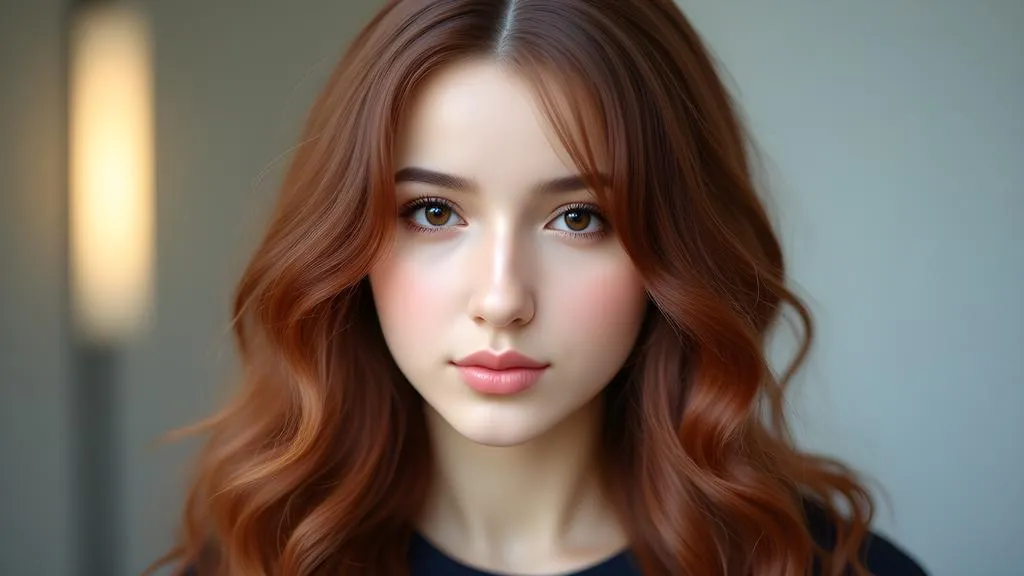 Create stunning AI-generated portraits with natural beauty. Craft realistic images of ethereal faces featuring expressive brown eyes, delicate features, long red wavy hair with light fringe, and no-makeup looks. High-detail, lifelike AI artistry for professional-grade visual content.