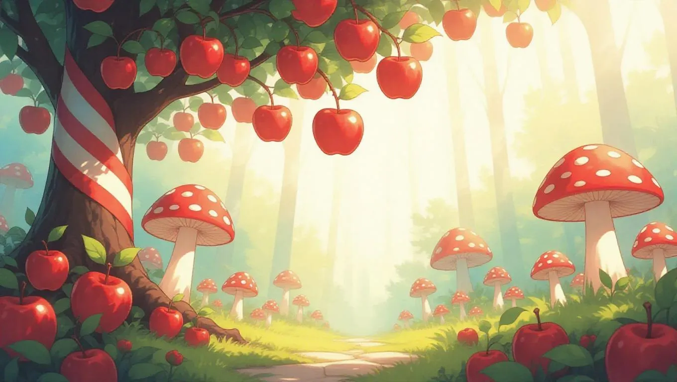 Vivago.ai crafts whimsical AI art: red apple forests, candy cane trees, raspberry mushrooms. Ghibli-style watercolor meets anime line art in surreal, storybook scenes with playful fruit creatures and abstract shapes. Professional-grade AI effects for stunning visuals.