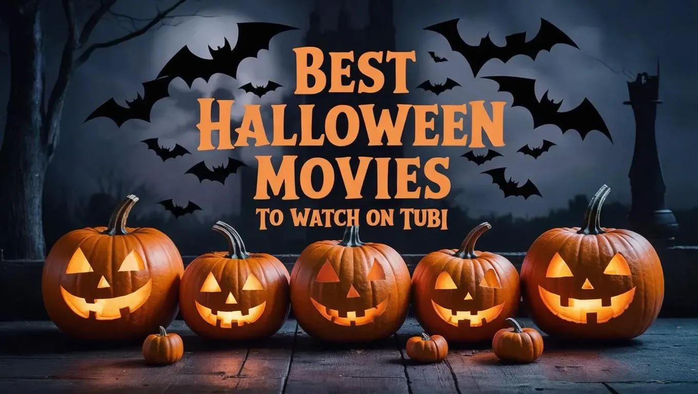 Generate spooky AI visuals for Halloween with eerie pumpkins, bats, and the text "Best Halloween Movies to Watch on Tubi." Vivago.ai's AI image generator and curated effects craft professional, haunting designs. Perfect for festive promotions. Create eerie Halloween content effortlessly!