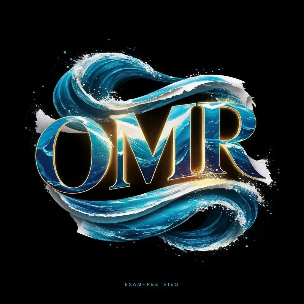 Create a striking exam video outro with AI-generated 2D vector art. Bold OMR text in paint-peel typography contrasts against a black backdrop, enhanced by white oceanic accents. Ideal for educational content with professional, eye-catching visuals. Design seamless exam-themed graphics effortlessly using vivago.ai's AI tools.