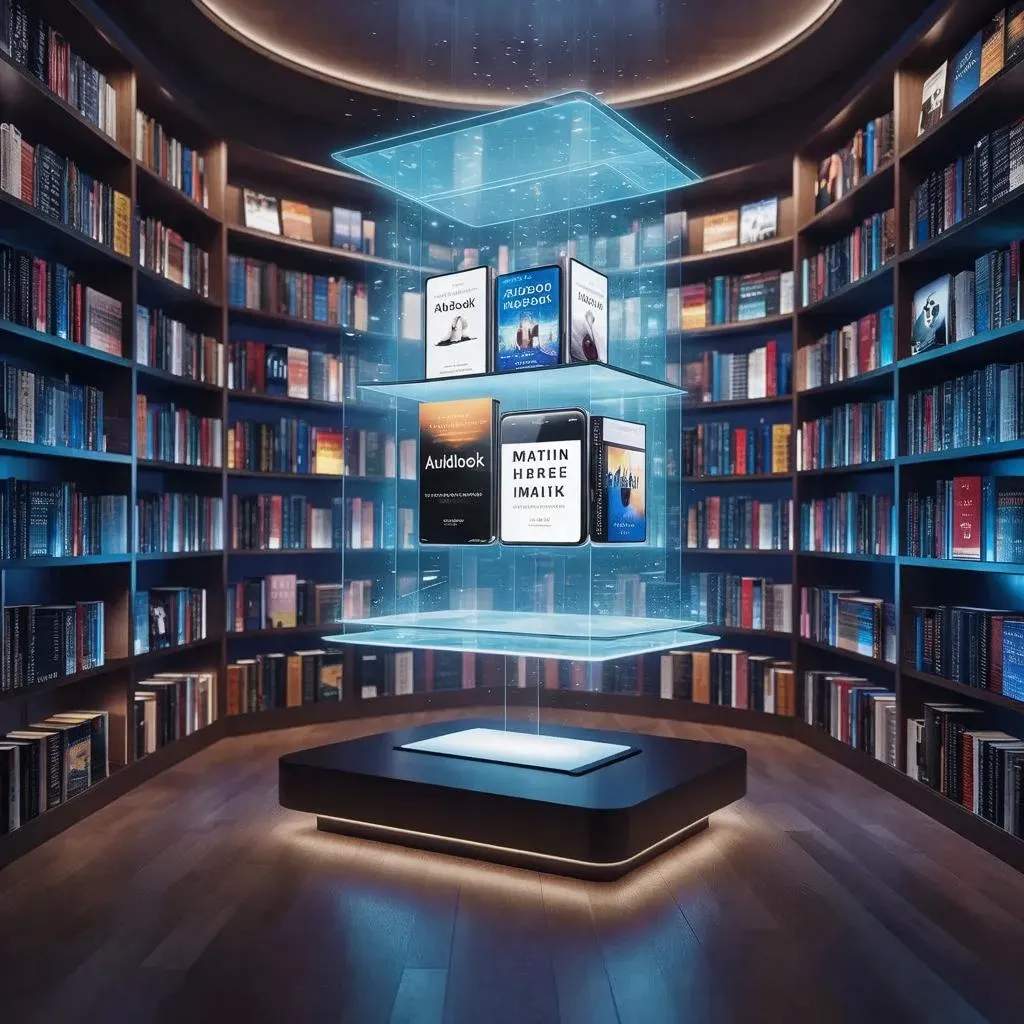 Explore a virtual library on your device with this AI-generated digital bookshelf. Perfect for audiobook lovers, it showcases a sleek, portable collection on phone or tablet screens. Transform your reading experience with AI-curated visuals, offering seamless access to endless titles. Ideal for tech-savvy readers seeking organized, on-the-go literary access.