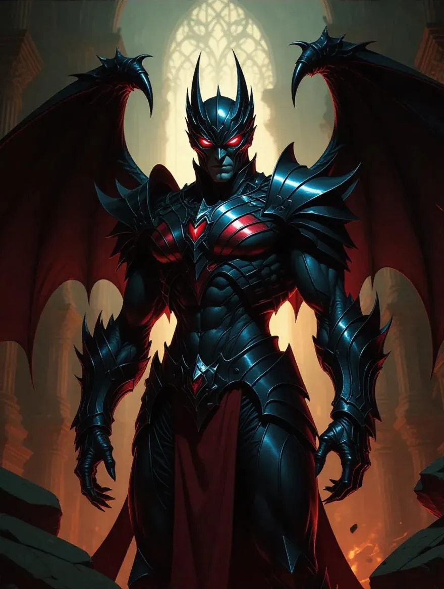 Transformers vampire character Starscream in dark fantasy style with a bluegray, red, black, and green-brown palette. Create AI-powered visuals using professional-grade effects and precise color schemes. Elevate projects with Vivago.ai's advanced tools for stylized, AI-generated character art and immersive storytelling.