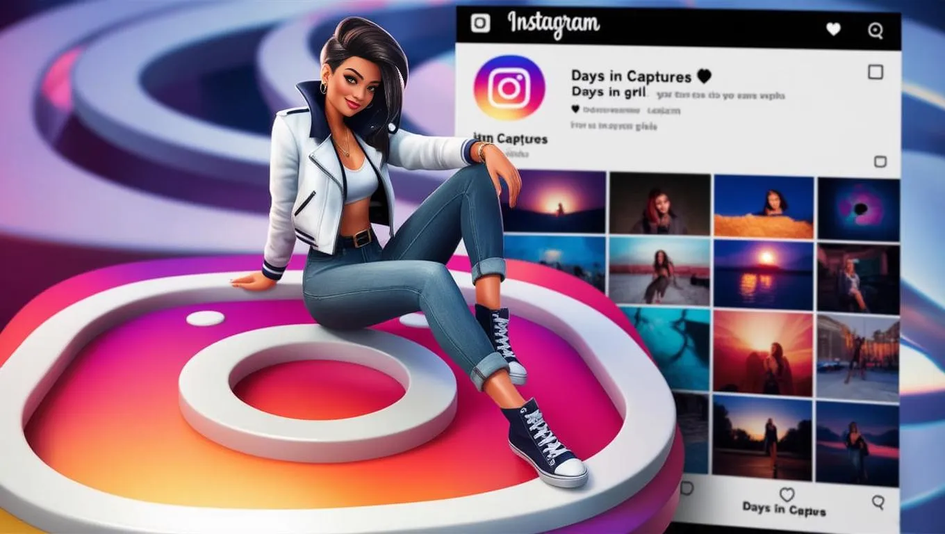 Generate AI-powered visuals of a stylish female character lounging on the Instagram logo with "Days in Captures" profile. Explore vibrant social media aesthetics, trendy outfits, and captivating imagery for immersive branding. Elevate content creation with dynamic AI effects and modern character designs, blending laid-back charm with professional-grade visual storytelling.