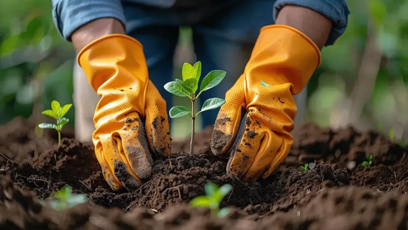 Generate AI visuals of gardening scenes with vibrant orange gloves planting small trees using Vivago.ai's creative tools. Perfect for eco-conscious content creators seeking eye-catching, step-by-step visuals for sustainable gardening tutorials or nature-inspired projects. Enhance your guides with professional-grade AI effects showcasing detailed hand protection and seedling care.