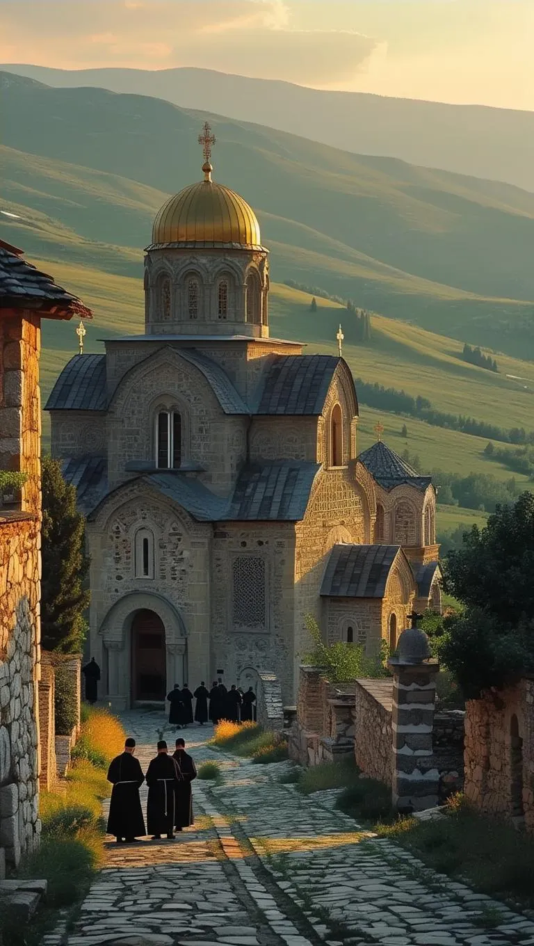 Generate majestic medieval Orthodox monasteries and churches with AI, blending spiritual aura and ancient grandeur. Explore powerful religious symbolism, divine authority, and historic architecture through AI effects. Craft ethereal visuals of sacred spaces, divine power, and timeless faith with professional AI image generation tools for historical and religious artistry.