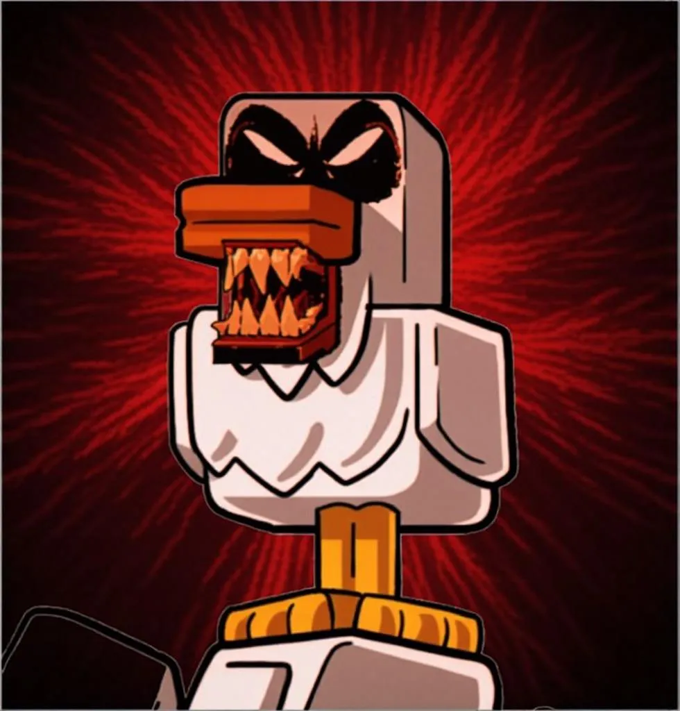 Transform the existing image into an ANGRY VERSION. Emphasize aggressive facial expressions, intense colors (like red and black), sharp angles, and a chaotic or menacing atmosphere. The subject should appear furious, with exaggerated features such as furrowed brows, clenched teeth, and possibly glowing eyes or fiery effects. The background should enhance the anger, perhaps with stormy skies, shattered objects, or dark shadows.