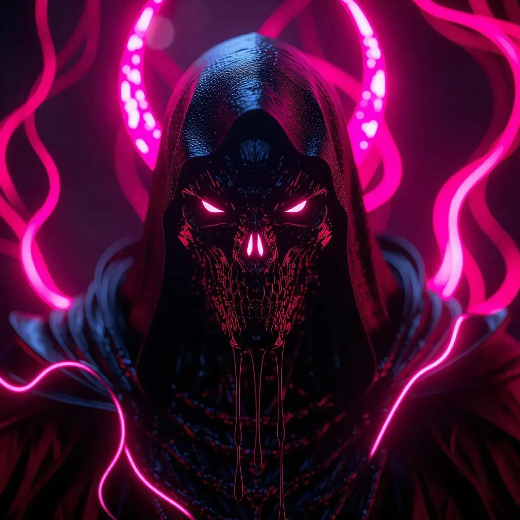 Explore AI-generated neon melt drip texture art of Abaddon the Destroyer, blending magenta, dark-crimson, black-red, and dusky-blue hues. Vivago.ai crafts striking visuals with glowing-red accents and dynamic textures, transforming prompts into professional-grade dark fantasy designs using advanced AI effects and editing tools.