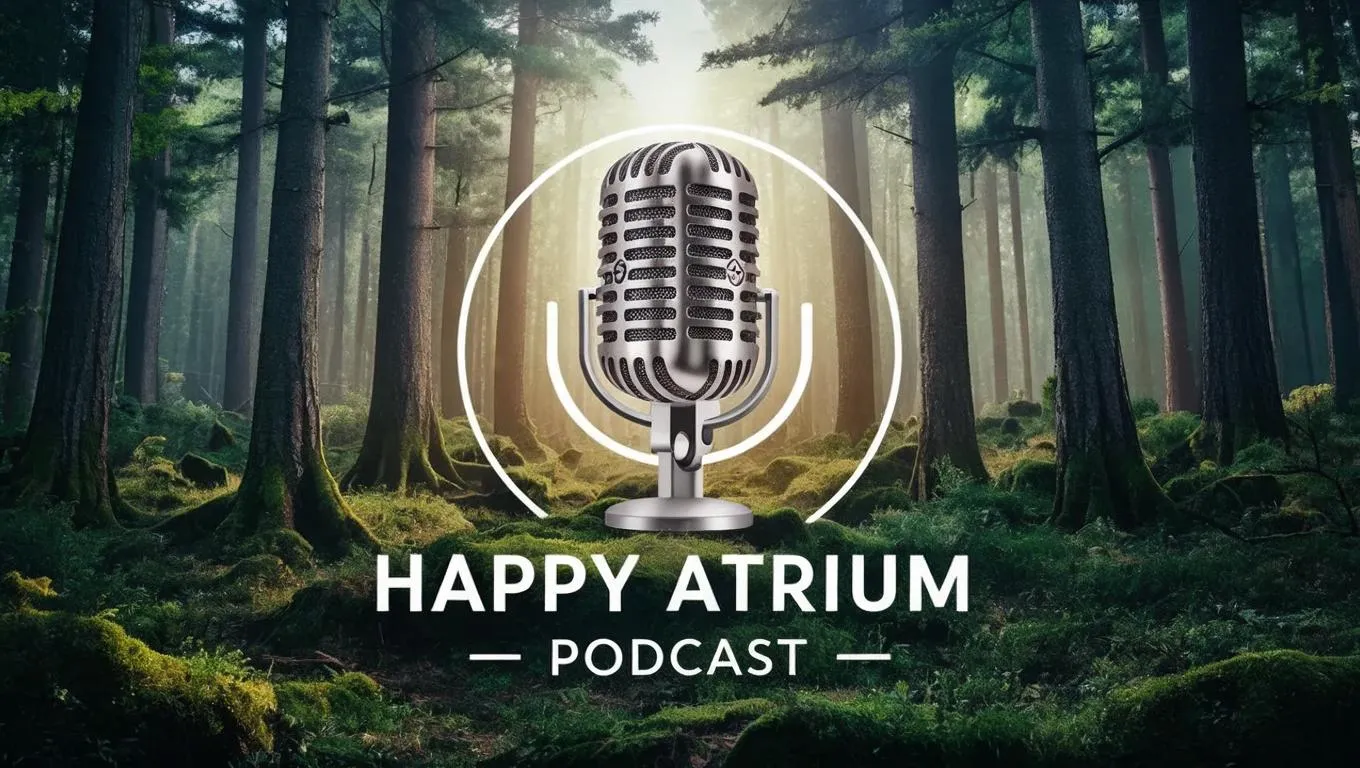 Create the perfect Happy Atrium Podcast logo with AI! Generate a forest-themed design featuring a microphone, blending nature and audio tech. Elevate your podcast branding with serene, professional visuals using vivago.ai’s AI tools for custom, soothing, and immersive logo creations. Ideal for nature-inspired, professional podcast identity.
