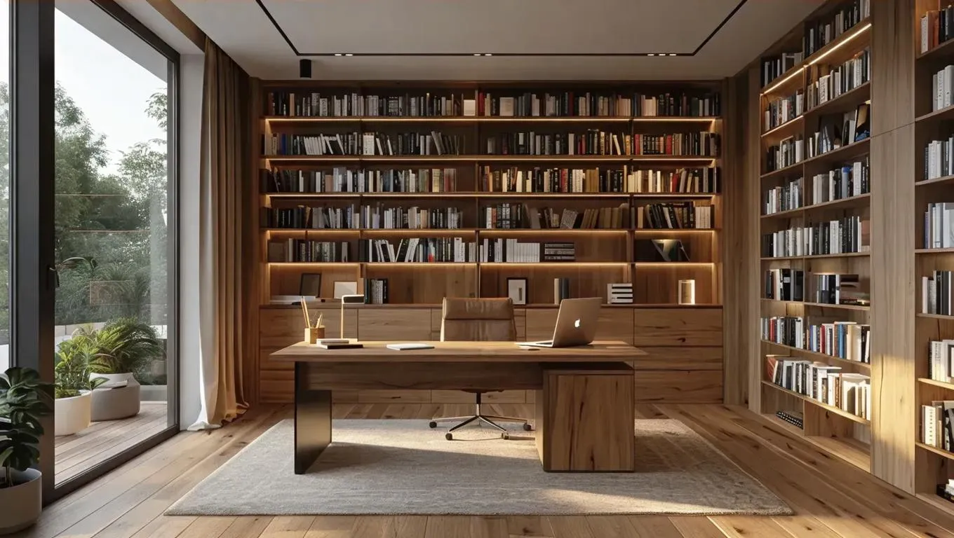 Transform your apartment interior into a cozy library-office hybrid with AI-generated visuals. Craft a stylish workspace featuring bookshelves, functional desks, and ambient lighting using vivago.ai's creative tools. Perfect for professionals seeking inspiration, productivity, and a touch of literary charm in their home environment.