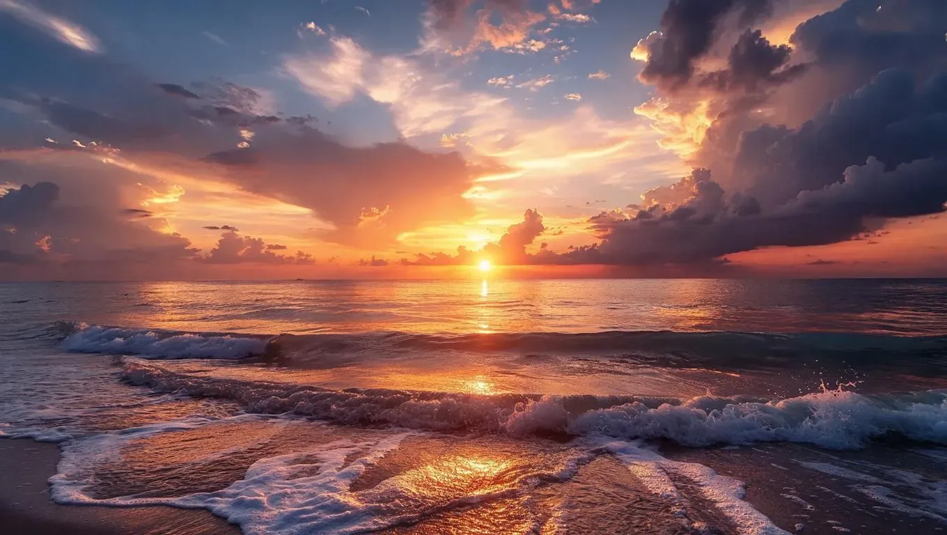 Serene beach sunset with orange-pink skies, drifting clouds, and gentle waves. Create vivid coastal scenes using AI image generation tools from vivid text prompts. Ideal for sunset-themed visuals, nature photography inspiration, or tranquil beachscapes. Elevate your creative projects with professional-grade AI effects and editing at vivago.ai.