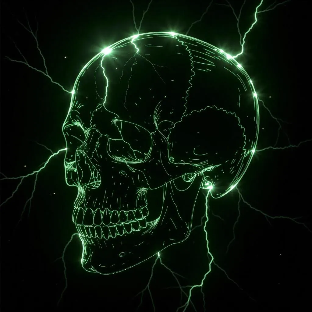 Create a striking AI-generated 3D wireframe skull with dynamic lightning and glowing green energy effects on a dark backdrop using Cinema 4D rendering. Perfect for edgy digital art, sci-fi visuals, or conceptual projects. Explore Vivago.ai's advanced AI tools for high-contrast, electrifying designs that blend futuristic tech with creative precision.