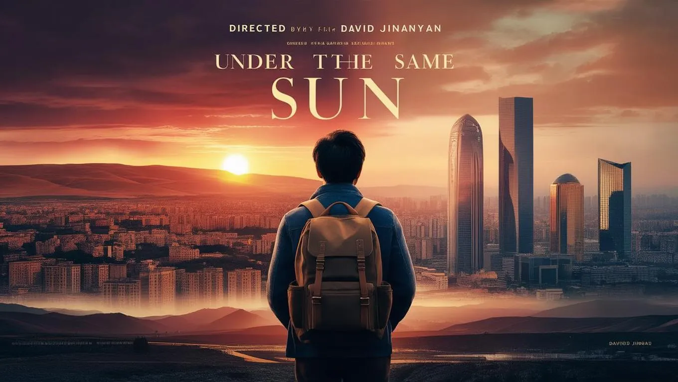 Explore "Under the Same Sun," David Jinanyan's documentary film, through a cinematic AI-generated poster blending Yerevan and modern Chinese metropolises. A golden sunset backdrop unites cultures as a solitary traveler gazes across horizons. Warm hues evoke unity, symbolizing cross-cultural journeys. Ideal for AI movie poster design, cultural storytelling, and atmospheric visual creation tools.