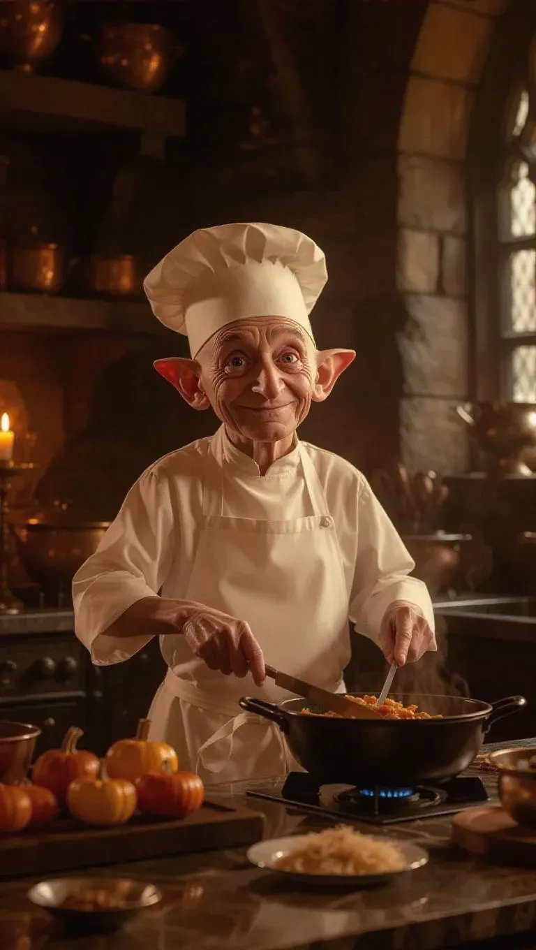 Transform photos into Dobby the house-elf as a quirky chef using AI. Generate magical Harry Potter-inspired cooking scenes, whimsical kitchen visuals, and playful house-elf culinary art. Perfect for fans, meme creators, and enchanting AI-generated content. Craft charming wizard-meets-chef imagery with VivaGo's AI effects.