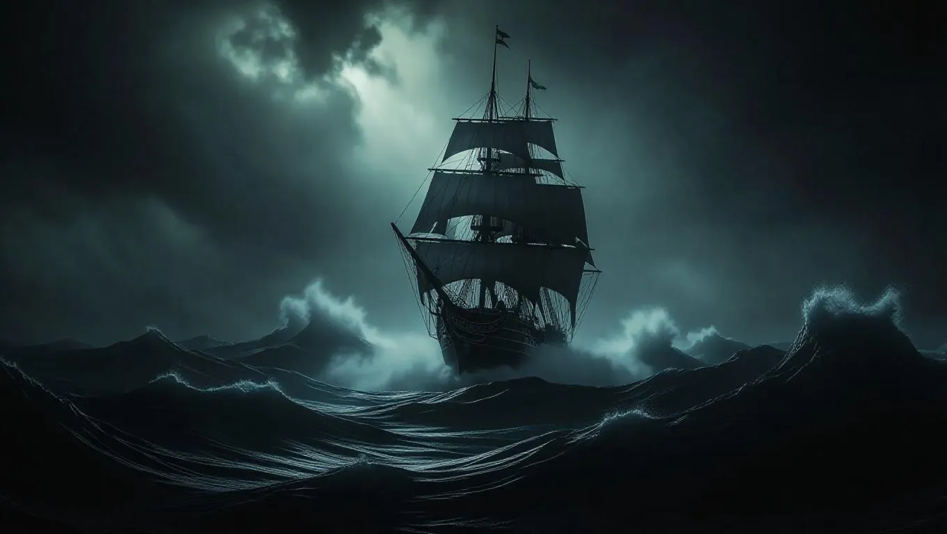 Craft haunting AI visuals of a ghost pirate captain and the HMS Hind braving storms. Generate supernatural maritime scenes with eerie skies, phantom ships, and spectral details using Vivago.ai's text-to-image AI tools. Ideal for dark fantasy art, book covers, or historical reimagining with professional editing effects.