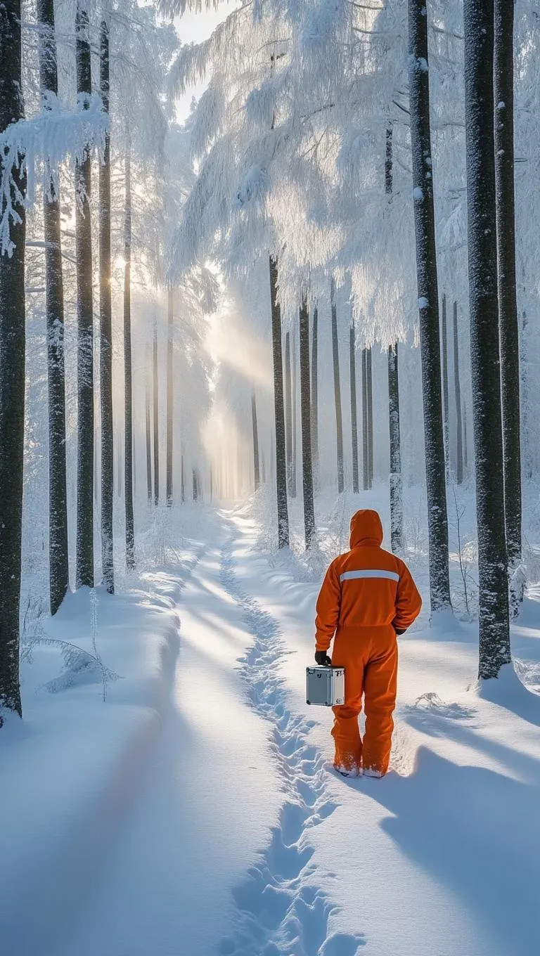 Create a serene winter forest scene with VivaGo AI. Generate realistic visuals of a wildlife veterinarian in snowy wilderness—frost-covered trees, untouched snow, and subtle animal tracks. AI-powered tools capture crisp details, visible breath, and calm determination for professional-grade imagery. Perfect for nature projects or storytelling. #Realistic AI effects bring frosty stillness to life.