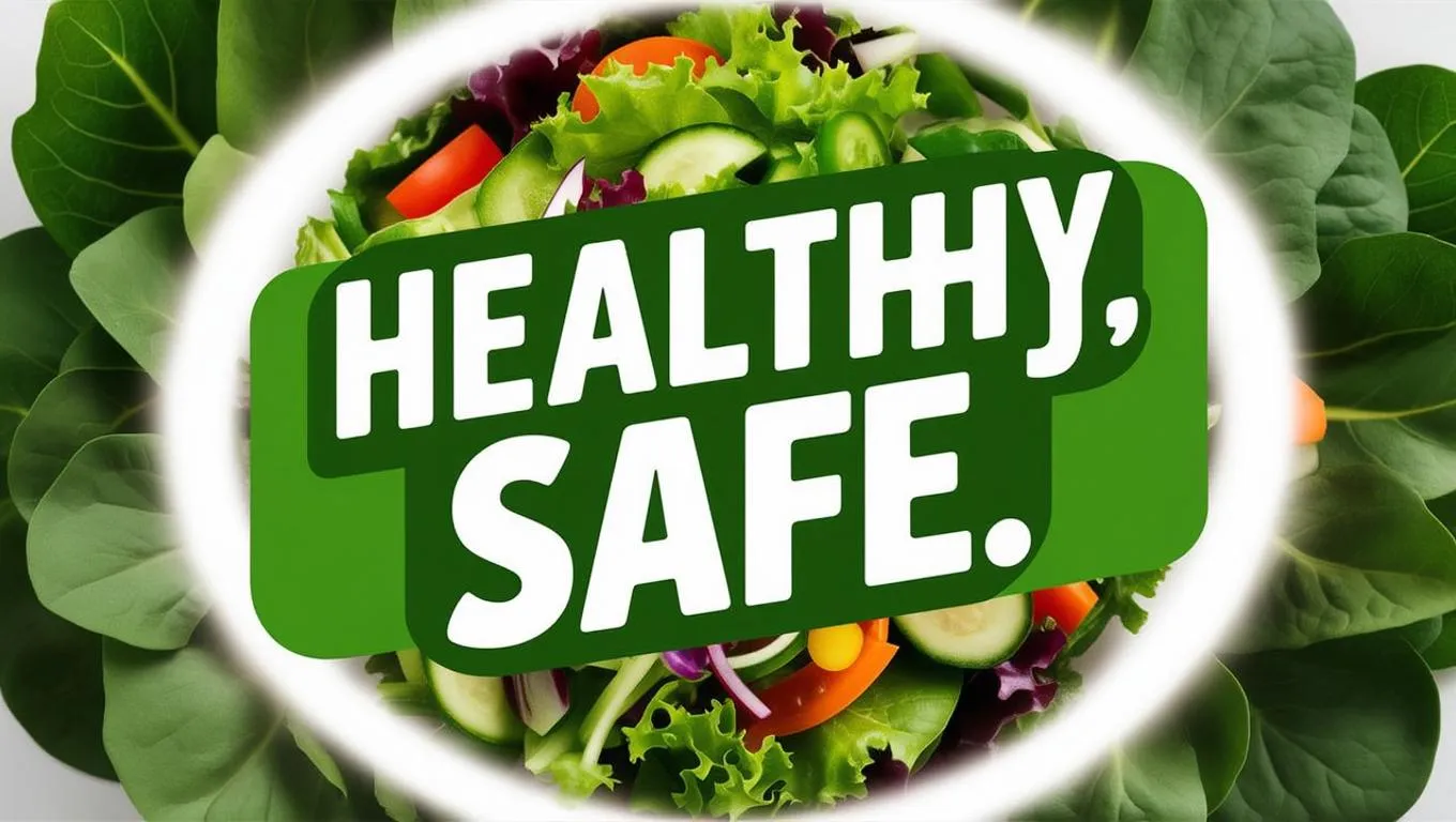 Promote fresh, nutrient-packed green salads with our "Healthy & Safe" label. Attract health-conscious buyers using crisp visuals and organic claims. Build trust with quality assurance messaging to highlight wholesome ingredients, driving sales for vibrant, appetizing salads that promise safety and nourishment. Perfect for boosting consumer confidence and purchase intent.