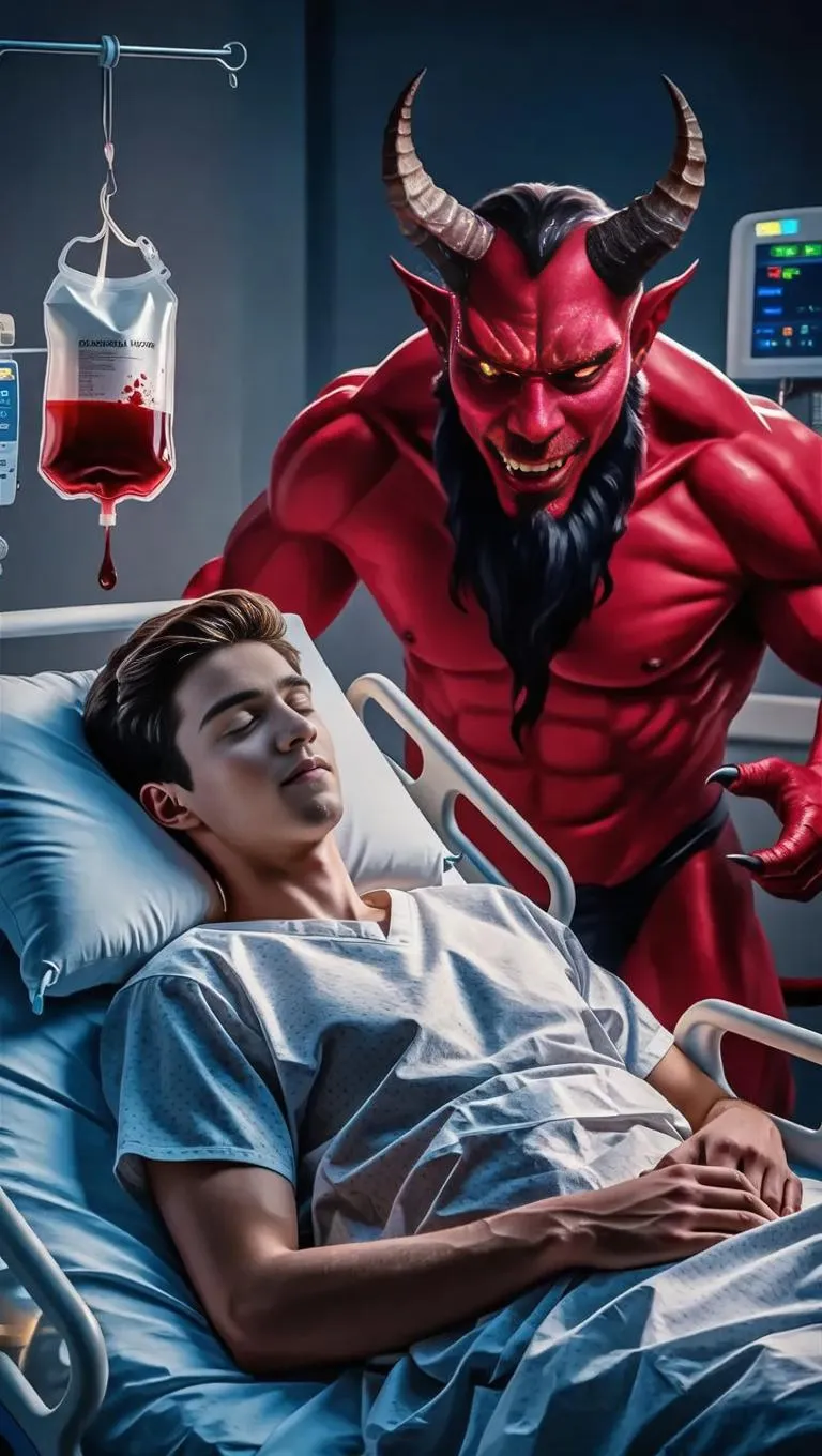 Create striking AI-generated visuals with vivago.ai. Transform text into realistic scenes like a young man in a hospital bed, juxtaposed with a menacing red demon. Leverage AI effects for supernatural elements, medical equipment, and dramatic contrast. Ideal for horror, fantasy, or storytelling projects requiring professional-grade, immersive imagery.
