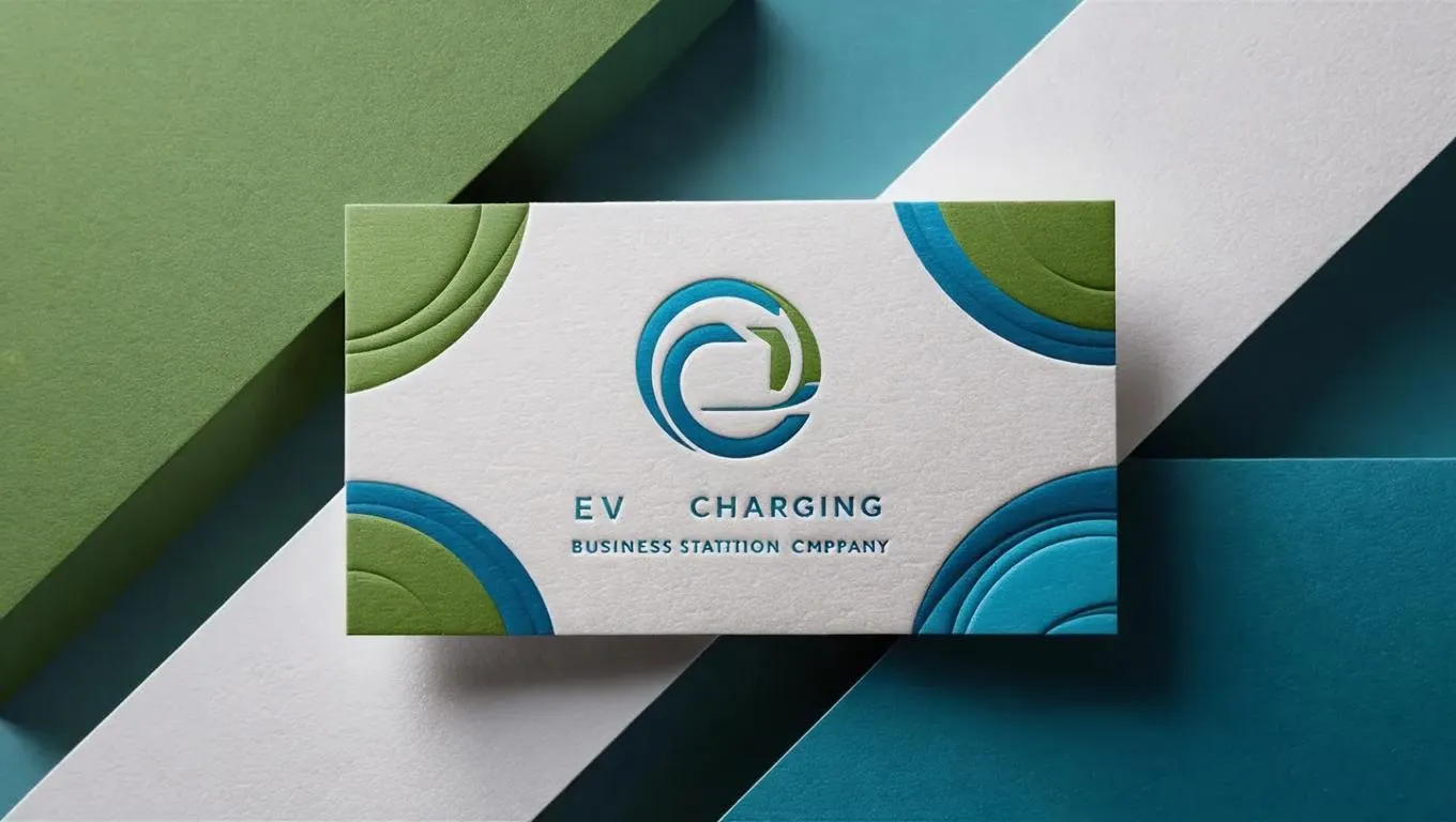 Design professional, eco-friendly business cards for EV charging stations with AI. Create sleek, minimalist designs using sustainable green, blue, and white hues. Highlight innovation, energy efficiency, and modern branding for eco-conscious corporate identities. Perfect for clean, tech-forward visuals that reflect environmental commitment.