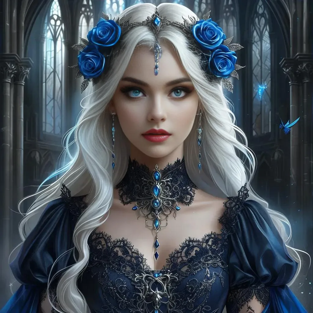 AI-generated modern fantasy art featuring an ethereal, haunting mythical being with luminous blue eyes, iridescent scales, and a gothic skeletal-mechanical dress. Vivago.ai blends Broken Glass effects, volumetric light, and vivid colors to create breathtaking beauty, divine presence, and otherworldly textures. Unleash pure perfection in AI art—stunning, unforgettable visuals with ethereal auras, energy, and molecular details.