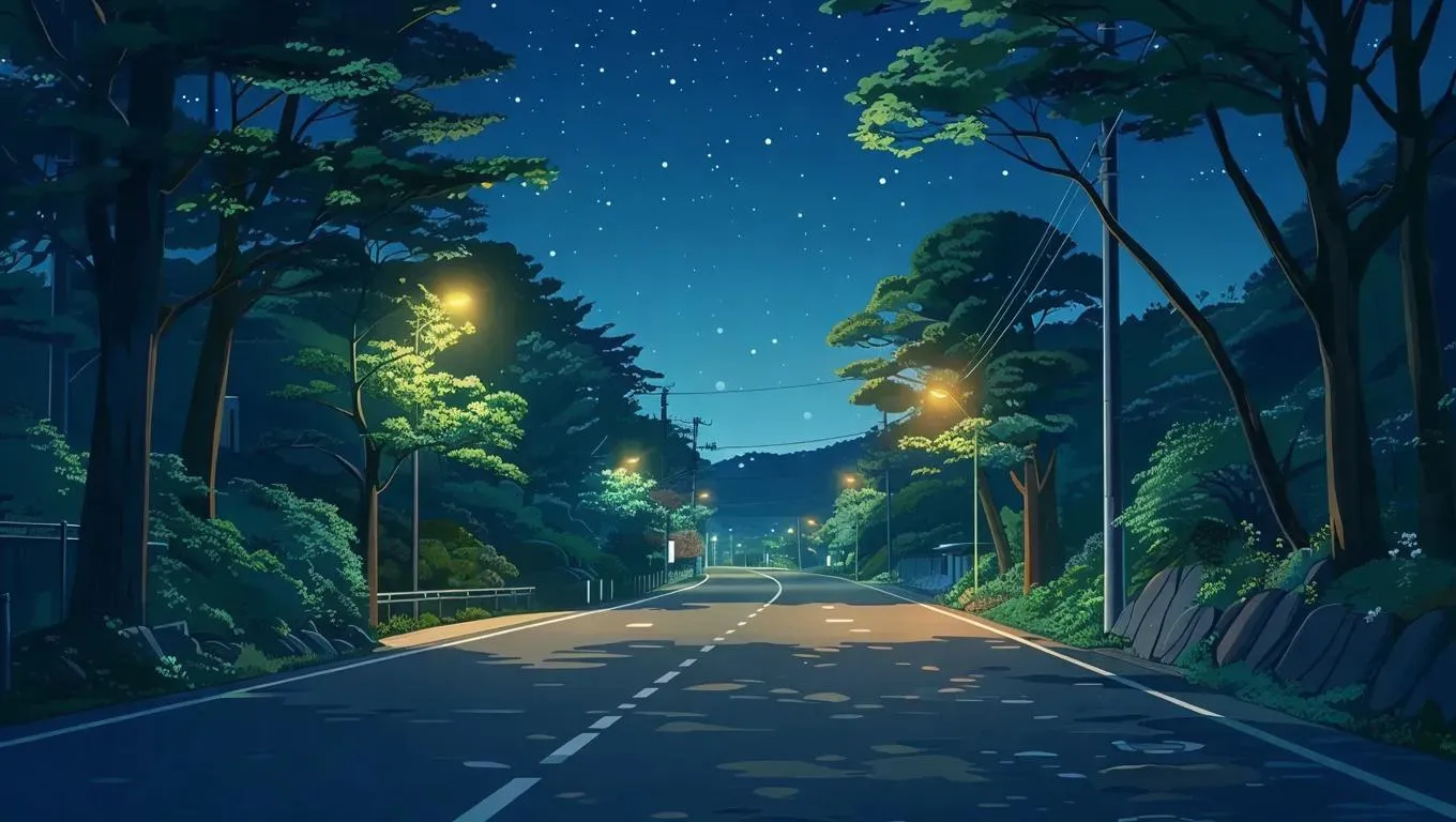 Generate nostalgic 1980s Japanese anime-style nightscapes with vivago.ai's AI art tools. Transform text into retro roadside scenes featuring trees, vintage cartoon aesthetics, and serene nighttime vibes. Create professional-grade 80s-inspired visuals using AI effects for authentic anime imagery.