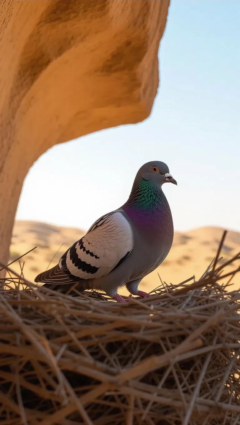 राजस्थान के रेगिस्तान में एक कबूतर मेहनत से अपना घर बना रहा था, धूप और हवा से बचने के लिए।