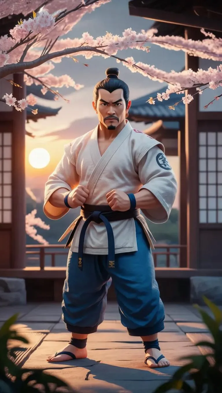 Craft vivid AI-generated 3D artwork of Esquilo, a martial arts master in a serene dojo with blooming cherry blossoms. Explore Pixar-style animation, traditional attire, and symbolic scenery, capturing wisdom, tranquility, and the fleeting beauty of life. Transform text into stunning visuals with VivaGo.ai's AI creativity tools.