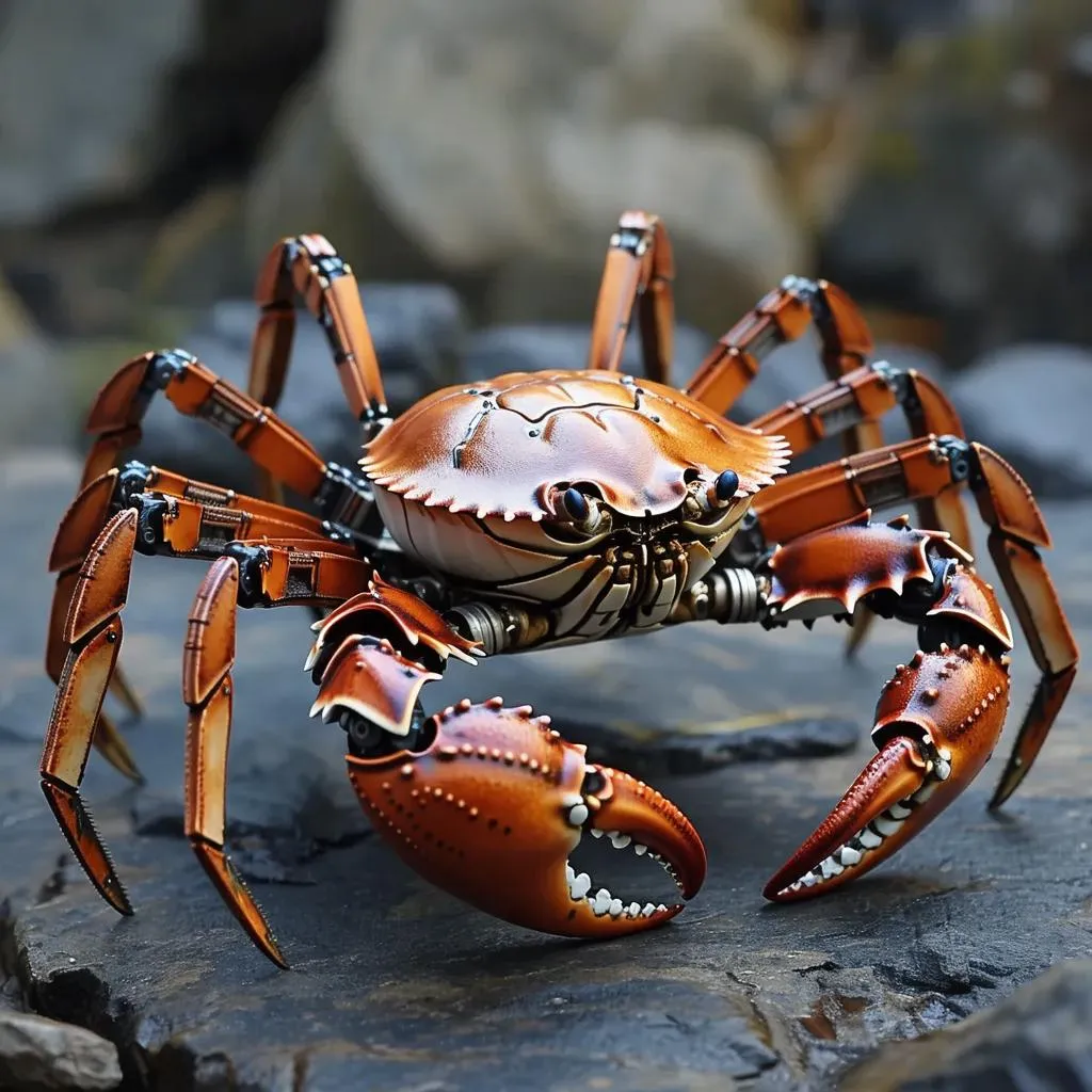 Generate AI art of a colossal Eldritch robotic crab-snake hybrid with 200 legs, blending Lovecraftian horror and futuristic tech. Vivgo.ai crafts surreal, hyper-detailed AI creatures, merging biomechanical elements, eerie textures, and intricate machinery for jaw-dropping sci-fi or horror visuals. Customize with AI tools for professional-grade robotic monster designs.