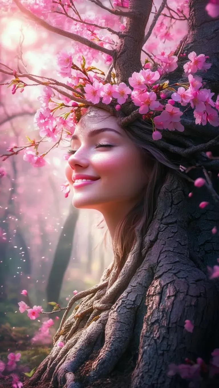 Generate ethereal visuals of a mystical tree-human fusion with vivid pink hues using AI. Craft serene forest scenes where cherry blossoms crown bark-textured beings, radiant light casting dreamy glows. Perfect for magical realism, our tools blend nature and fantasy seamlessly. Create professional-grade enchanting AI art with vibrant colors, serene atmospheres, and mesmerizing details—ideal for storytelling, digital art, or surreal photography projects.