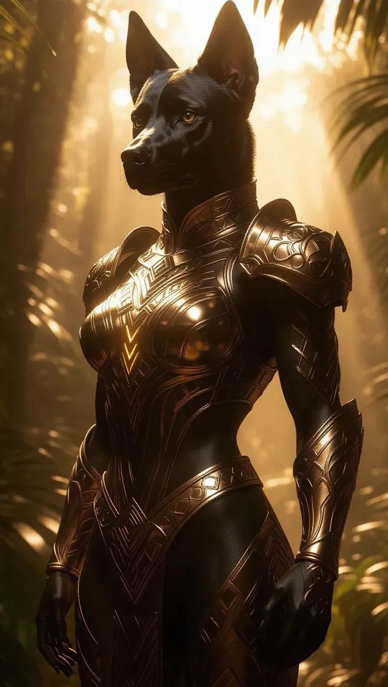 Generate a striking cyberpunk warrior dog-humanoid hybrid with VIVAGO.AI. Blend realistic animal anatomy, mystical tribal armor, and neon-lit enchanted jungles. Create cinematic fantasy-realistic scenes featuring glowing energy symbols, dramatic lighting, and futuristic aesthetics. Transform prompts into professional AI art with cyberpunk flair. Ideal for futuristic visuals, AI-generated characters, and immersive digital storytelling.