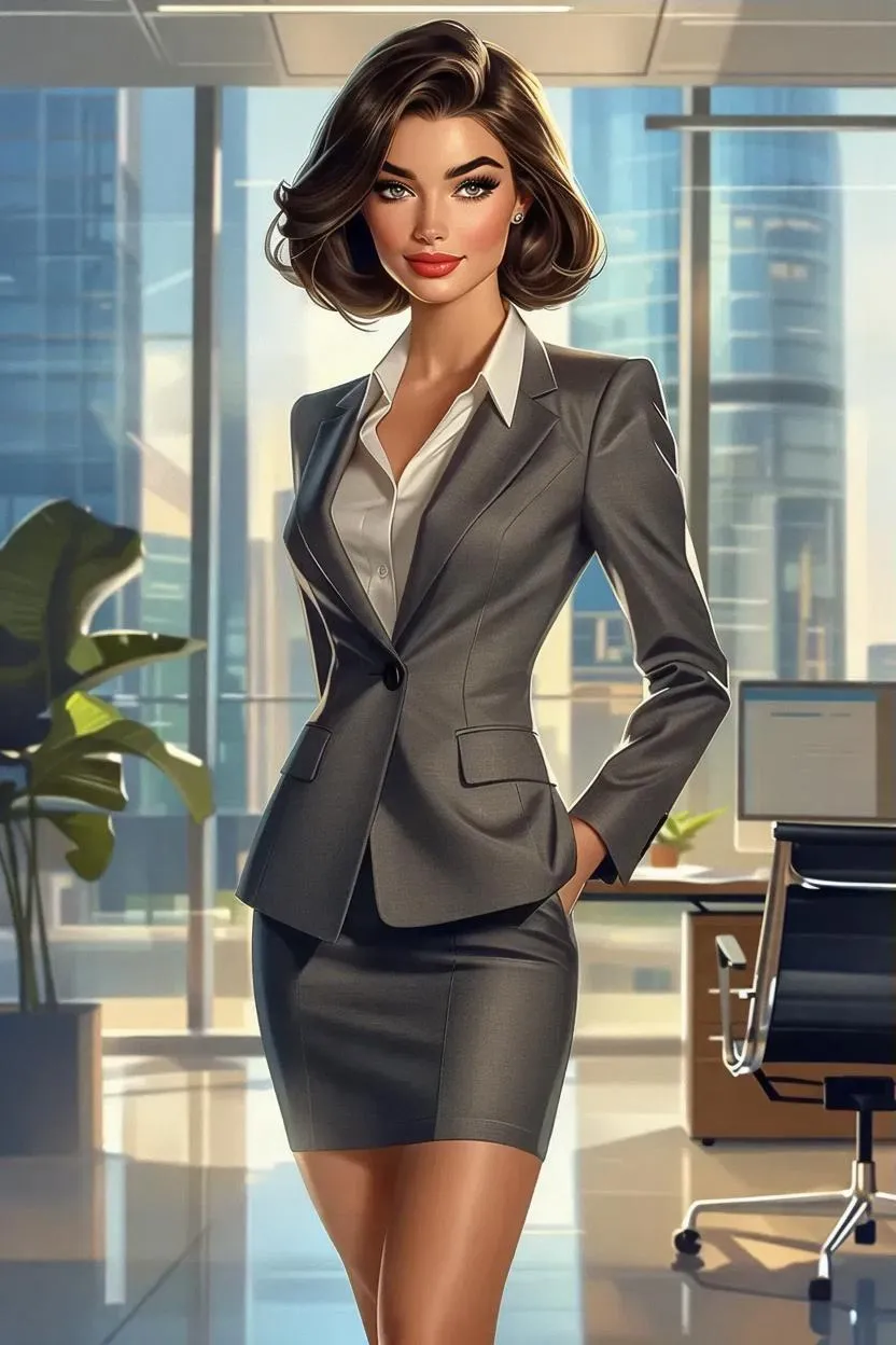 Generate a head-to-toe AI image of a poised, hardworking young American woman with short hair, medium height, and a plump figure. Designed in formal heels and classic attire, this AI-generated portrait blends calm elegance with professional charm, ideal for creative projects or personalized visuals. Explore vivago.ai's tools for lifelike, detailed character design powered by advanced AI.