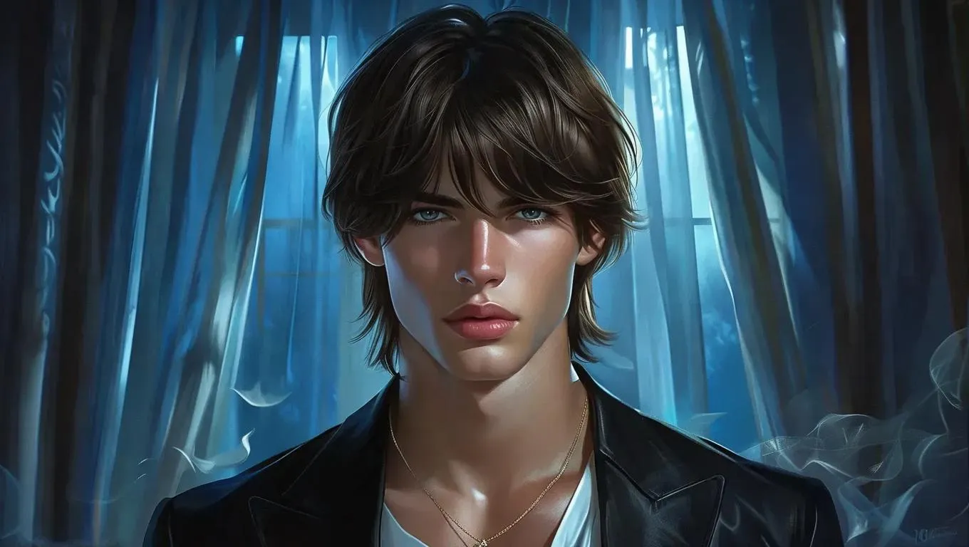 Create a semi-realistic AI-generated ghost character: young man with brown straight hair, curtain bangs, muscular abs, and spectral pecs in a haunting midnight scene. Perfect for eerie visual storytelling or supernatural-themed projects using Vivago.ai's advanced AI image tools.