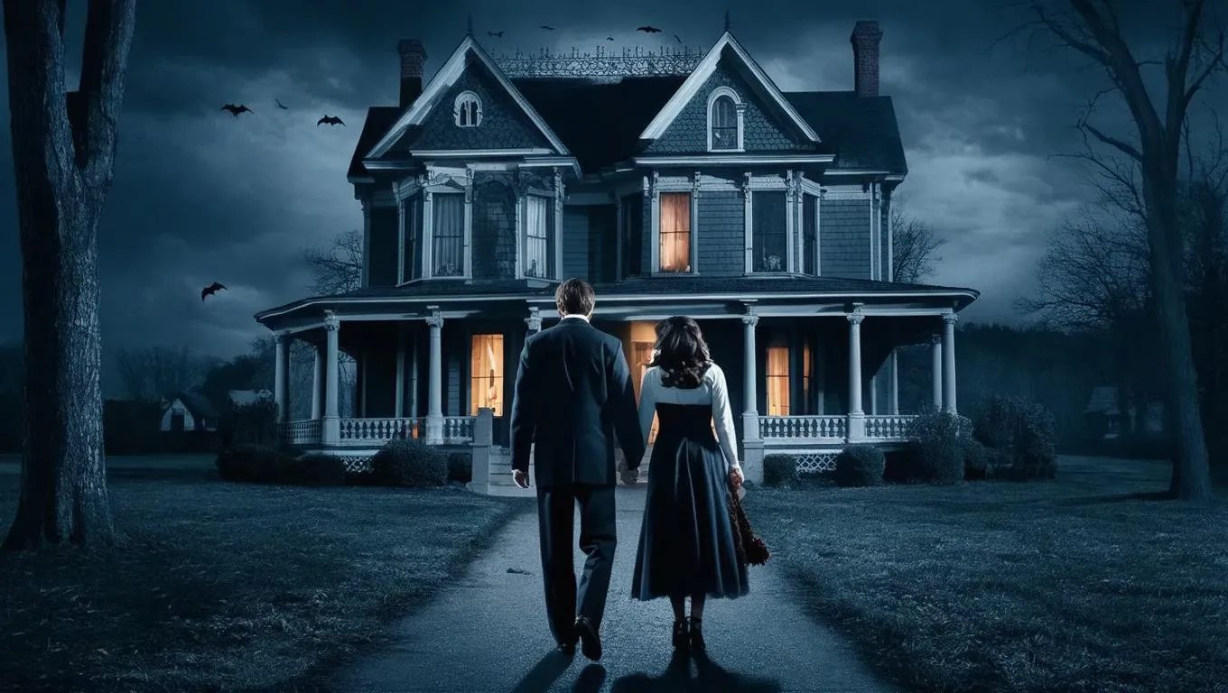 Generate eerie AI visuals of a couple escaping their haunted house. Perfect for horror storytelling with spooky atmosphere, AI-powered effects, and professional editing tools for captivating, ghostly imagery.
