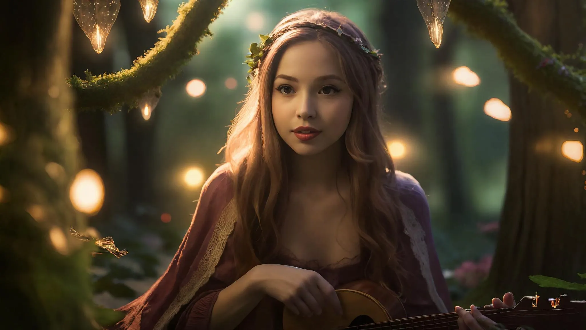 Transform text into enchanting AI visuals with vivago.ai. Generate magical scenes like Aislyn serenading fairy folk, captured from a unique behind-the-audience perspective. Elevate storytelling with dynamic camera angles, AI effects, and professional editing for immersive, fantasy-inspired video or image content.