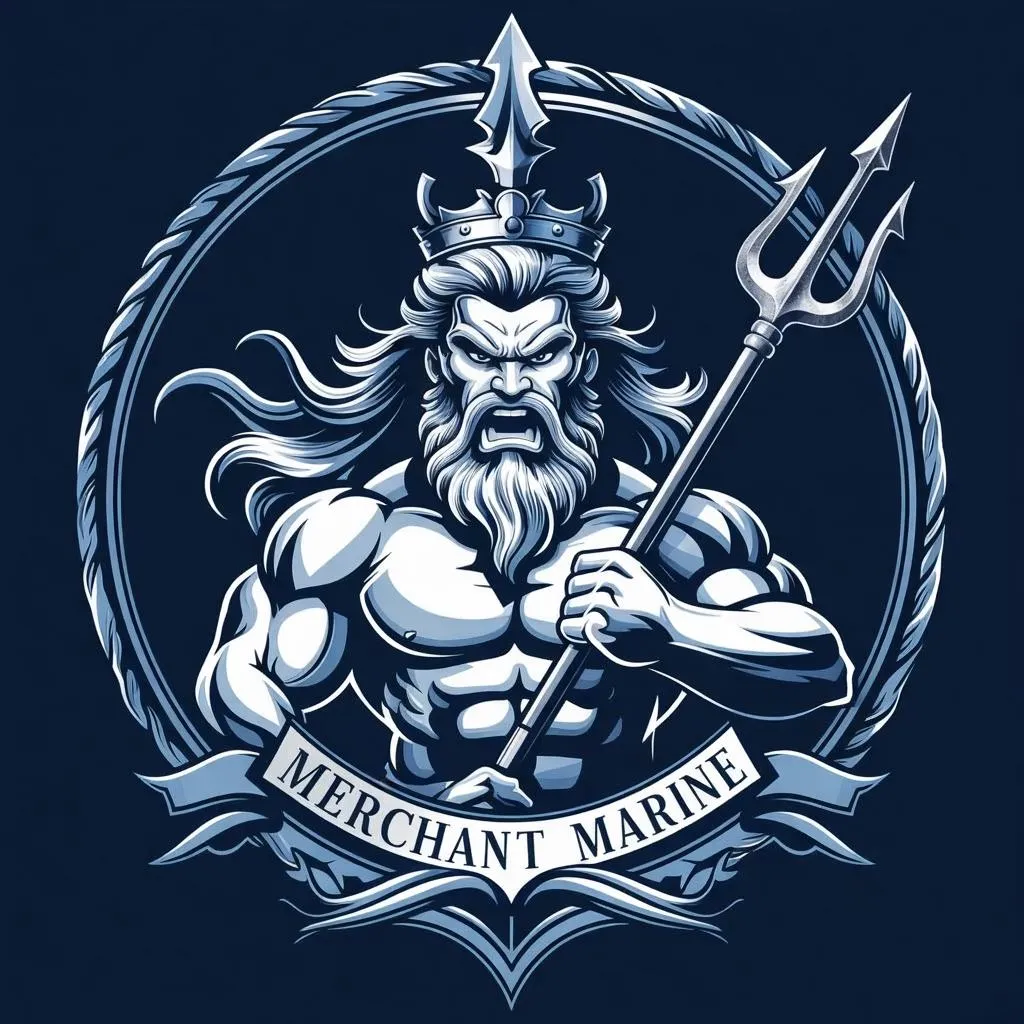 Craft a bold line art merchant marine logo featuring an angry Poseidon design. VivaGo.ai combines mythical power with maritime symbolism through sharp, minimalist linework. Ideal for nautical branding, this AI-generated emblem channels oceanic authority and raw energy in striking black-and-white artistry.