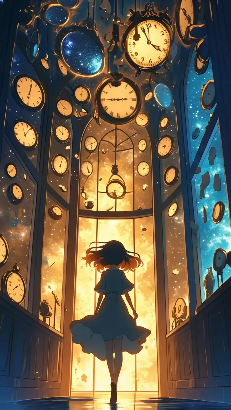 Transform text into surreal anime scenes with vivago.ai's AI image generator. Craft time-bending visuals like a girl traversing a day-night hallway with erratic clocks, color-shifting hair, and mirrored shadows. Unlock cinematic watercolor effects, gradient inks, and surreal architecture for liminal, otherworldly art. #Anime #Cinematic #Watercolor