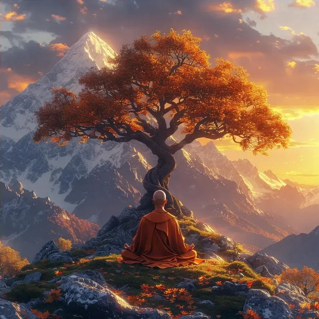 Transform your text into stunning AI-generated art with VivaGo. Create serene visuals of a meditating bald, bearded man in lotus pose on a misty mountain peak, framed by a solitary tree. Elevate your projects with AI-powered imagery blending spirituality and nature. Craft peaceful, symbolic scenes effortlessly using advanced AI tools for professional-grade creative results.