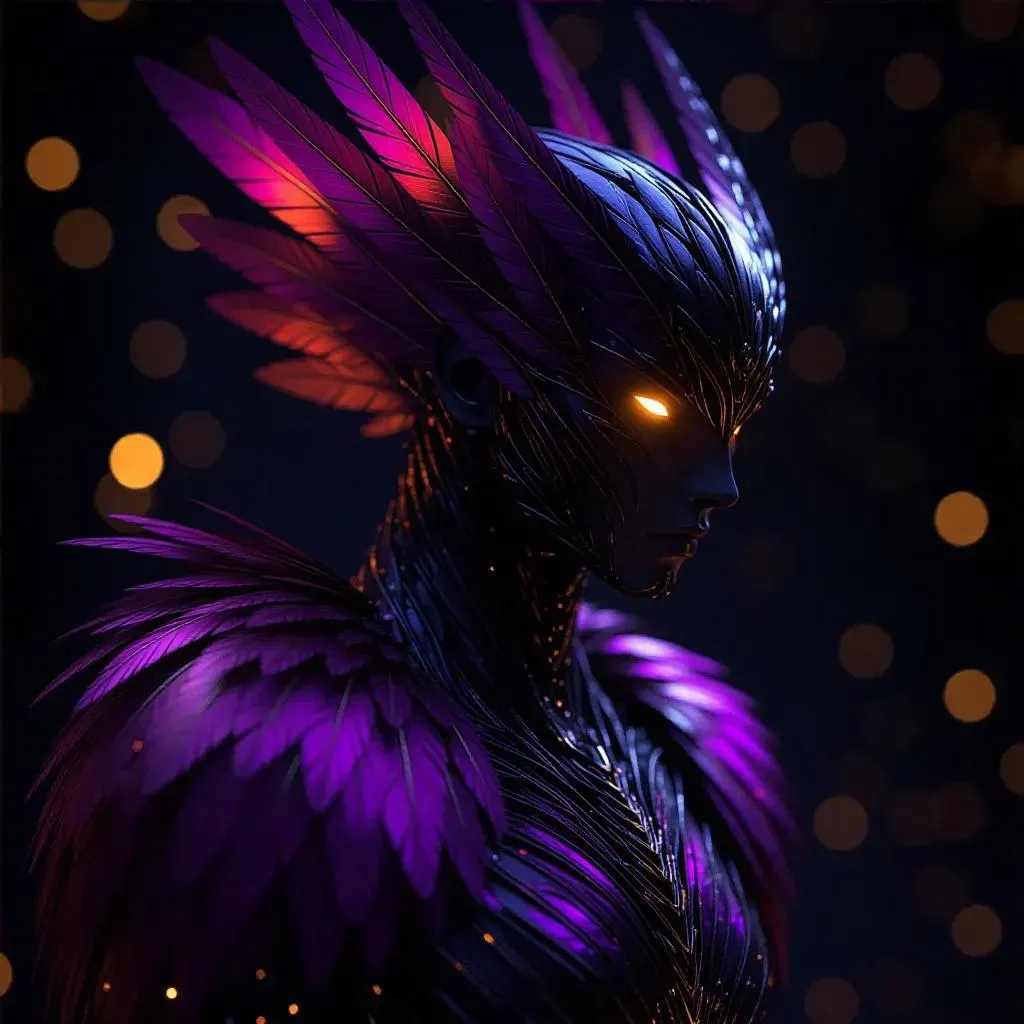 Create a dark fantasy character Abaddon with feather-textured hair in a striking black-purple, pink-red, and glowing orange palette using AI. Vivago.ai transforms text prompts into vivid visuals, offering advanced color blending and ethereal effects for mythical creature designs, anime-inspired art, and supernatural digital creations. Generate professional-grade dark fantasy imagery effortlessly.