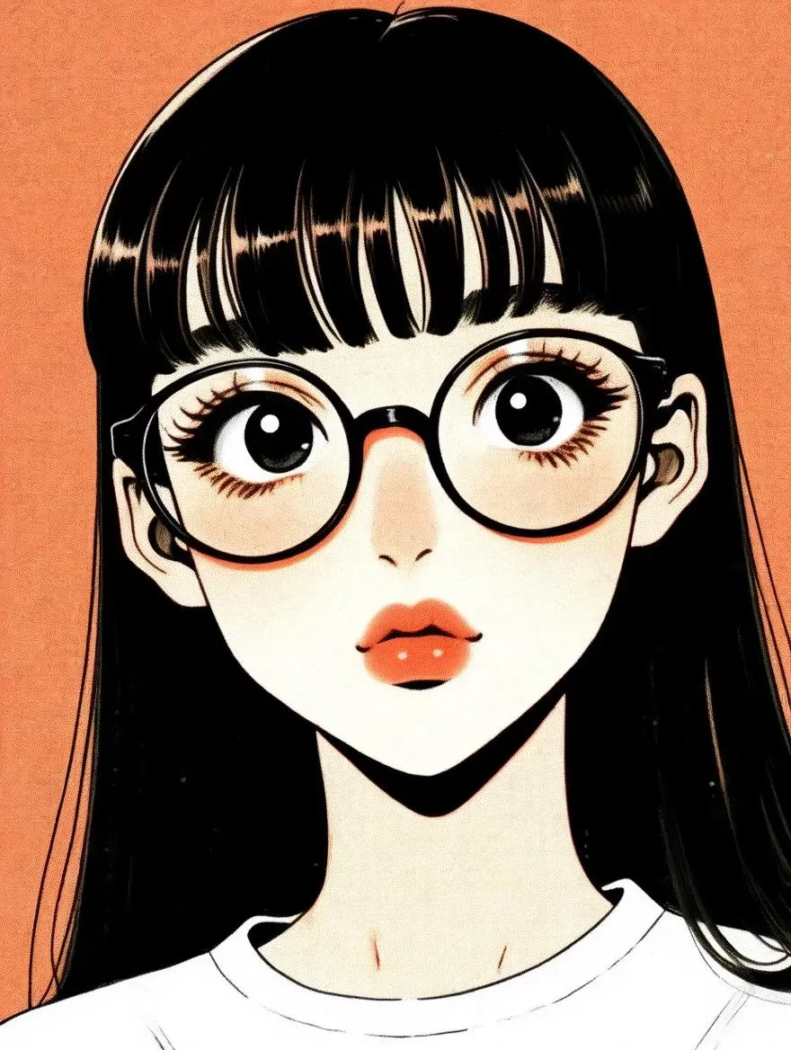 Generate AI anime art with retro Showa manga disco vibes. Create characters featuring black long hair, glasses, big eyes, and sweet-cool styles. Design retro collage scrapbook visuals with white short-sleeved shirts, reddish-brown lips, and curly lashes. Perfect for vintage anime, comic, and cartoon enthusiasts. Craft unique AI-powered retro anime characters effortlessly on VivaGo.ai.