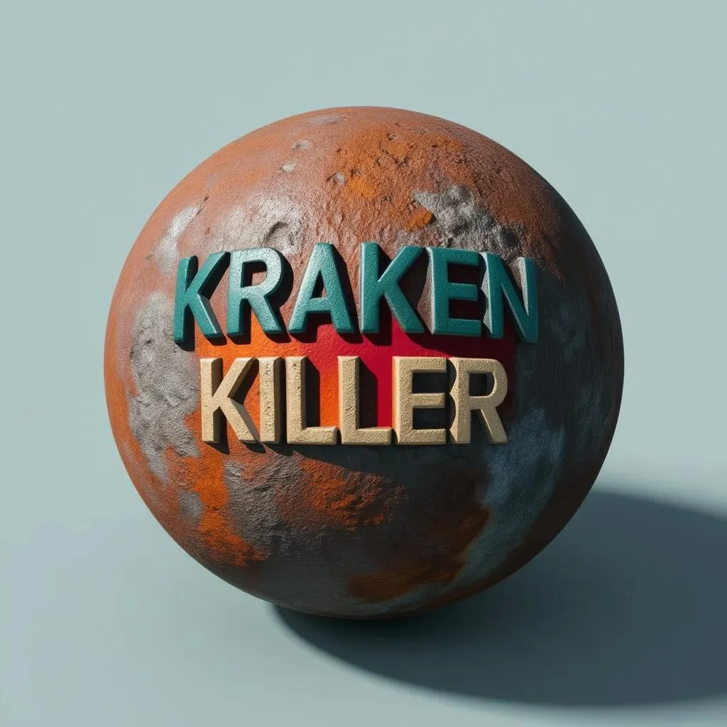 Create a hyper-realistic AI-generated image of a "Kraken Killer" rusty cannon ball isolated on a solid light background. Features Deep Sea Teal, Stormy Gray, Beige, red-orange, and Ink Black details. Ideal for branding, gaming, or nautical themes. Leverage Vivago.ai's AI tools for professional-grade visual effects, text-to-image precision, and high-quality editing.