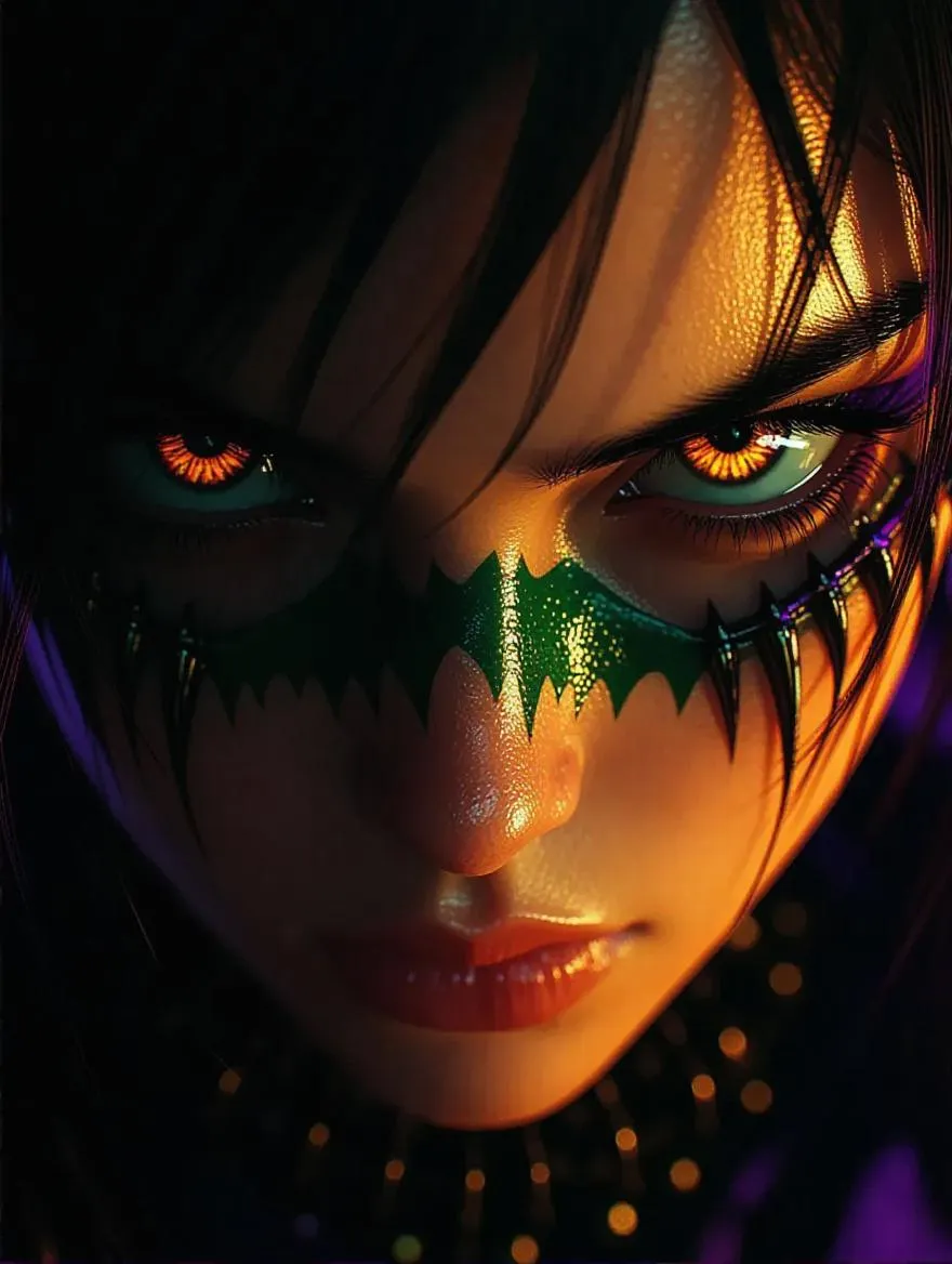Create a cinematic dark anime portrait of Scissorjaws with AI. Generate striking orange-brown, green, and purple hues, blending dramatic shadows and vivid background details. Elevate your visuals with vivago.ai's AI effects for professional-grade, moody anime artistry.
