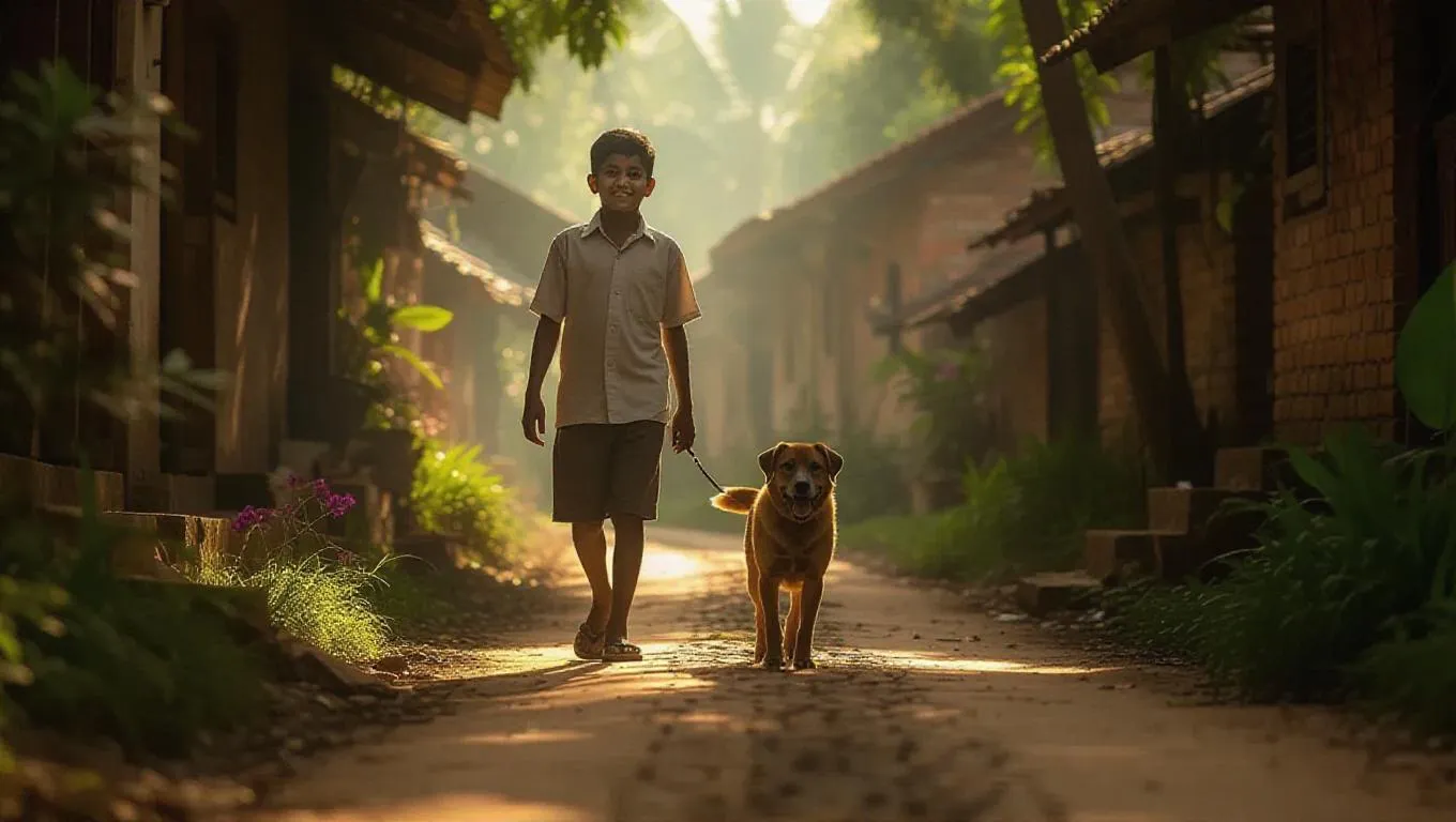 Experience the serene charm of a green village as Rahul and his loyal brown dog Tommy stroll joyfully together. vivago.ai transforms this heartwarming scene into vibrant AI-generated visuals, perfect for storytelling, creative projects, or capturing the essence of peaceful companionship in nature.