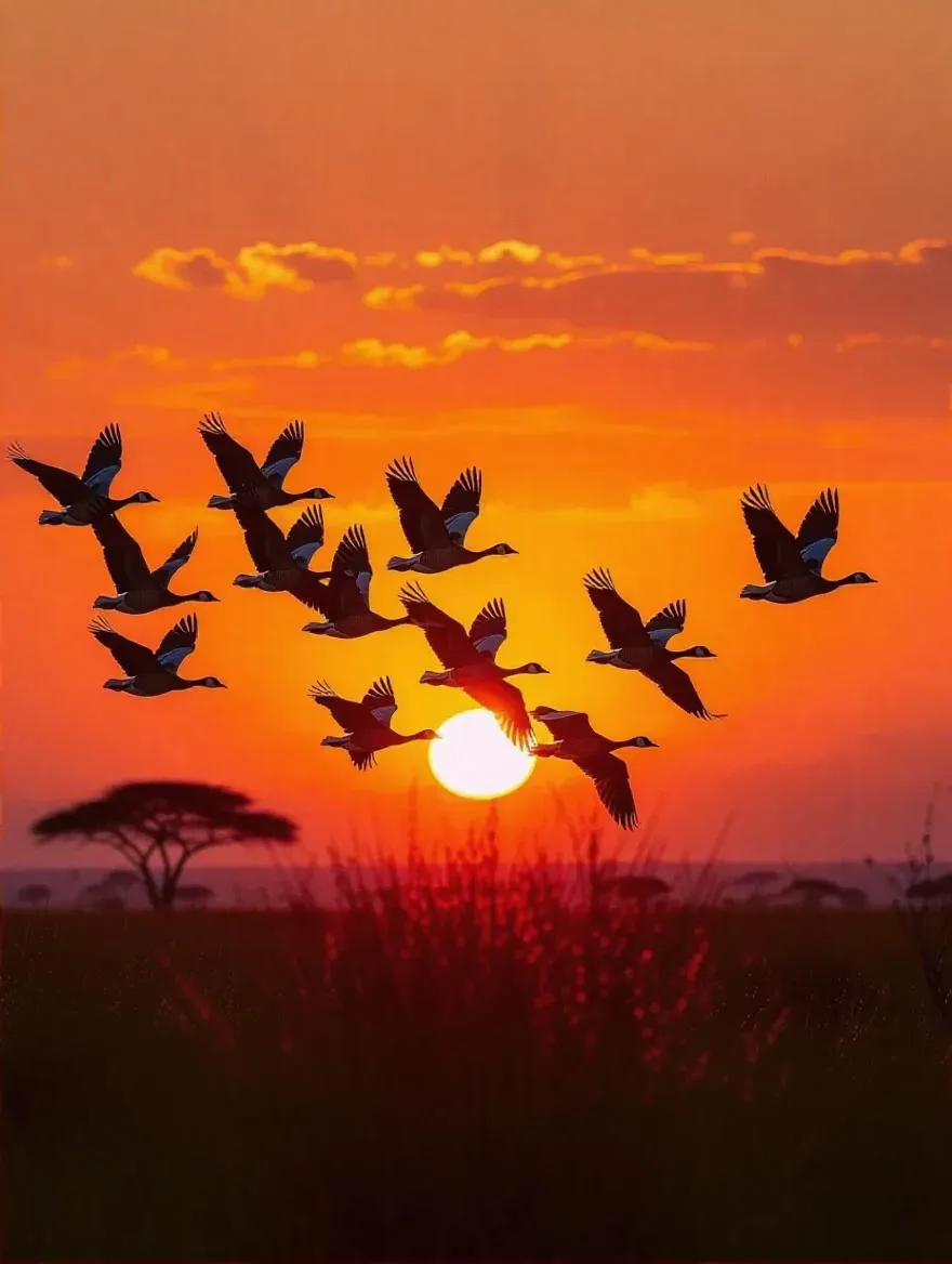 Transform descriptive prompts into stunning sunset visuals with vivago.ai. Create AI-generated African savannah landscapes featuring geese in flight against vibrant orange and pink skies. Our tools craft serene wildlife imagery with professional-grade results. Perfect your nature scenes effortlessly. Word count: 35 Core keywords: AI-generated African savannah, sunset visuals, geese in flight, vivago.ai, AI image tool, nature scenes, descriptive prompts