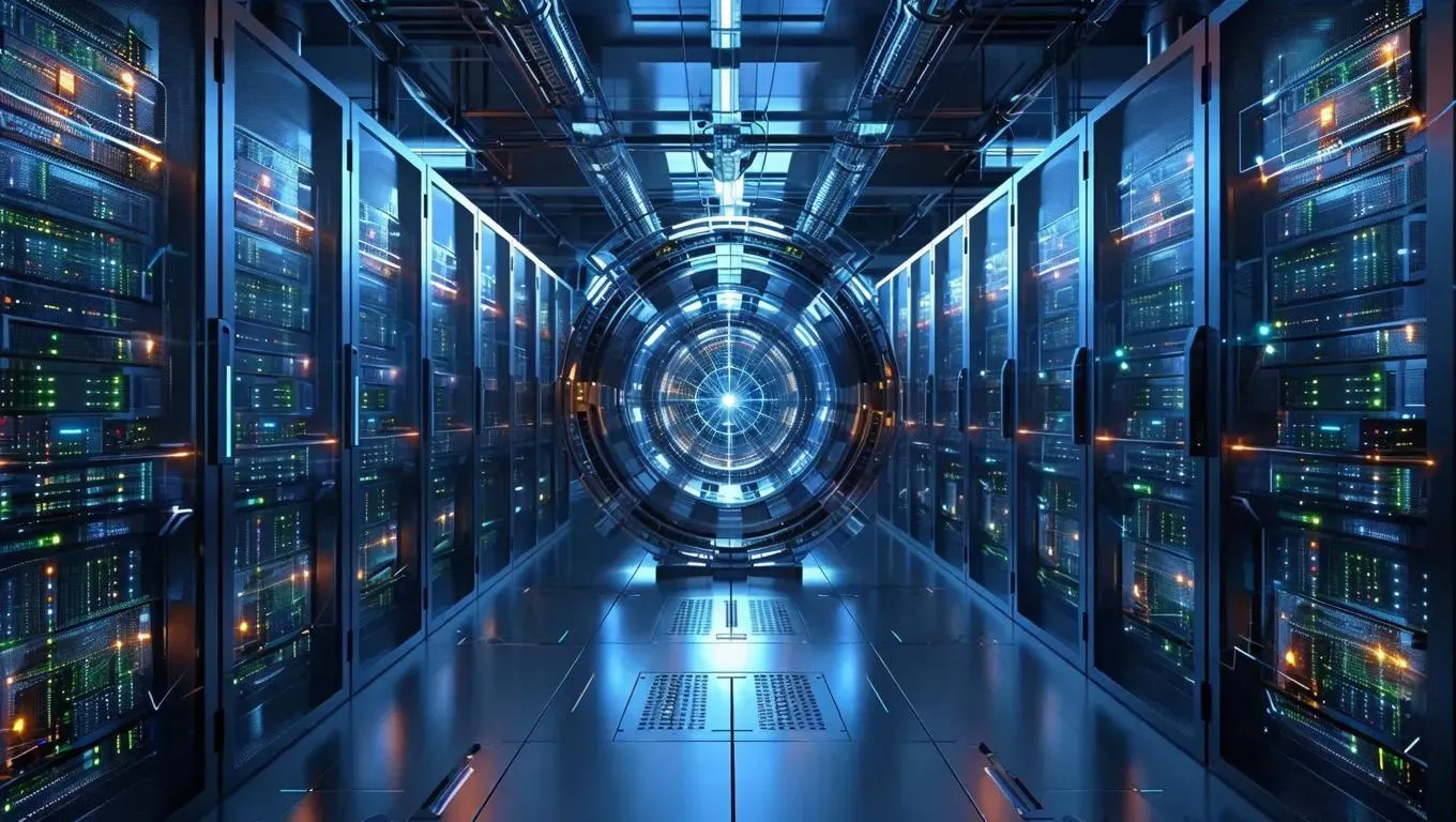 Explore AI-generated visuals of interconnected computer servers resembling the Hadron Collider, generating dynamic molecular bonding processes. Witness atoms and molecules form through cutting-edge AI effects. Transform scientific concepts into striking digital art with vivago.ai's creative tools.