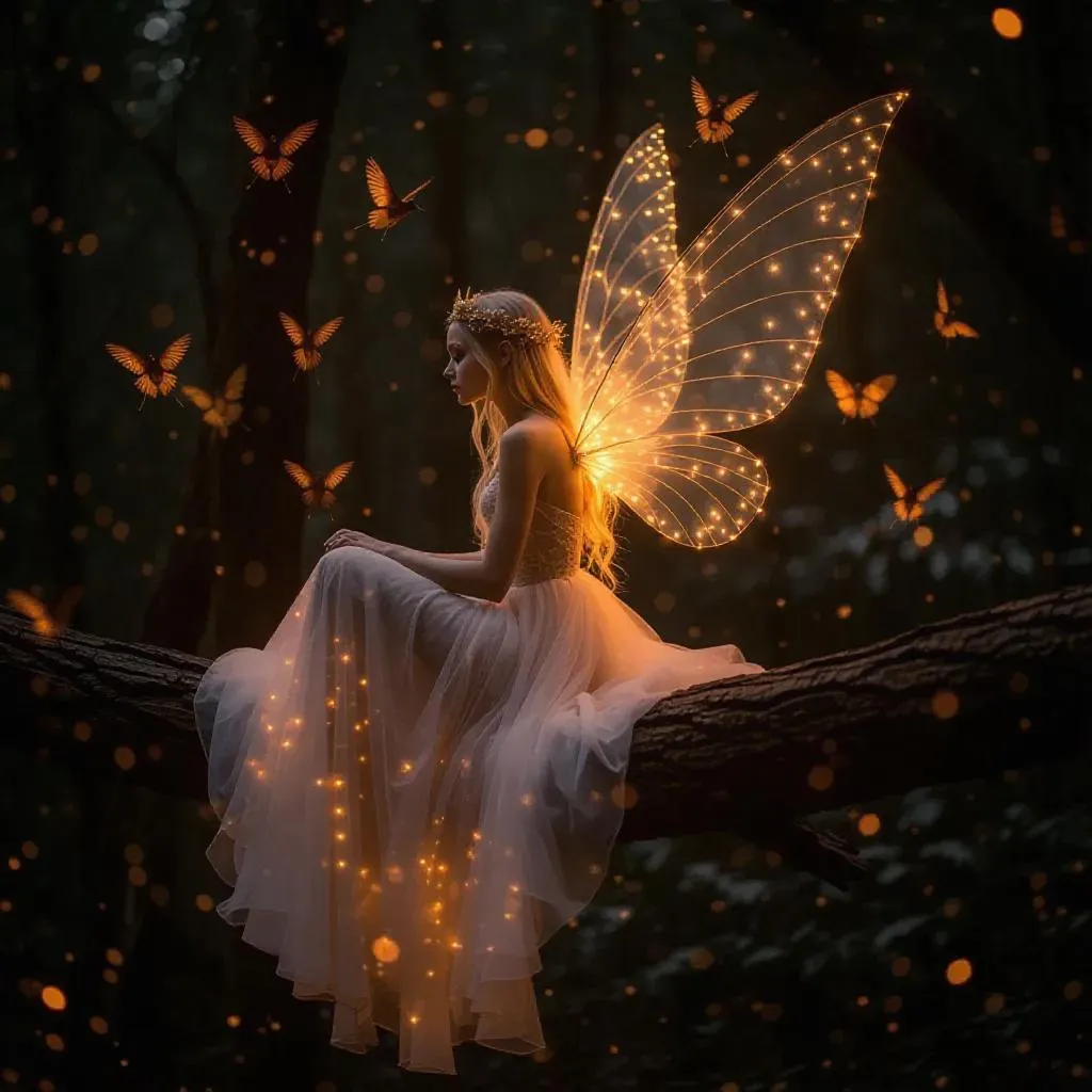 Create AI-generated mystical fairy art with golden glowing wings, ethereal moonlight-woven dresses, and enchanted forest backgrounds. Explore fantasy digital art tools for magical creature designs, vibrant golden sparks, and mystical atmospheres. Perfect for professional-grade AI artwork blending mystery, nature elements, and otherworldly charm.