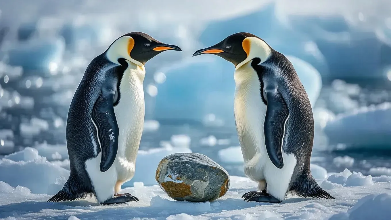 Capture the majestic emperor penguin courtship in Antarctica's icy tundra with AI. Generate stunning visuals of pristine snow, contrasting black-and-white feathers, and symbolic pebble exchanges under ethereal polar skies. Perfect for nature enthusiasts, explore untouched icy realms and heartwarming wildlife moments through vivago.ai's advanced AI image tools.