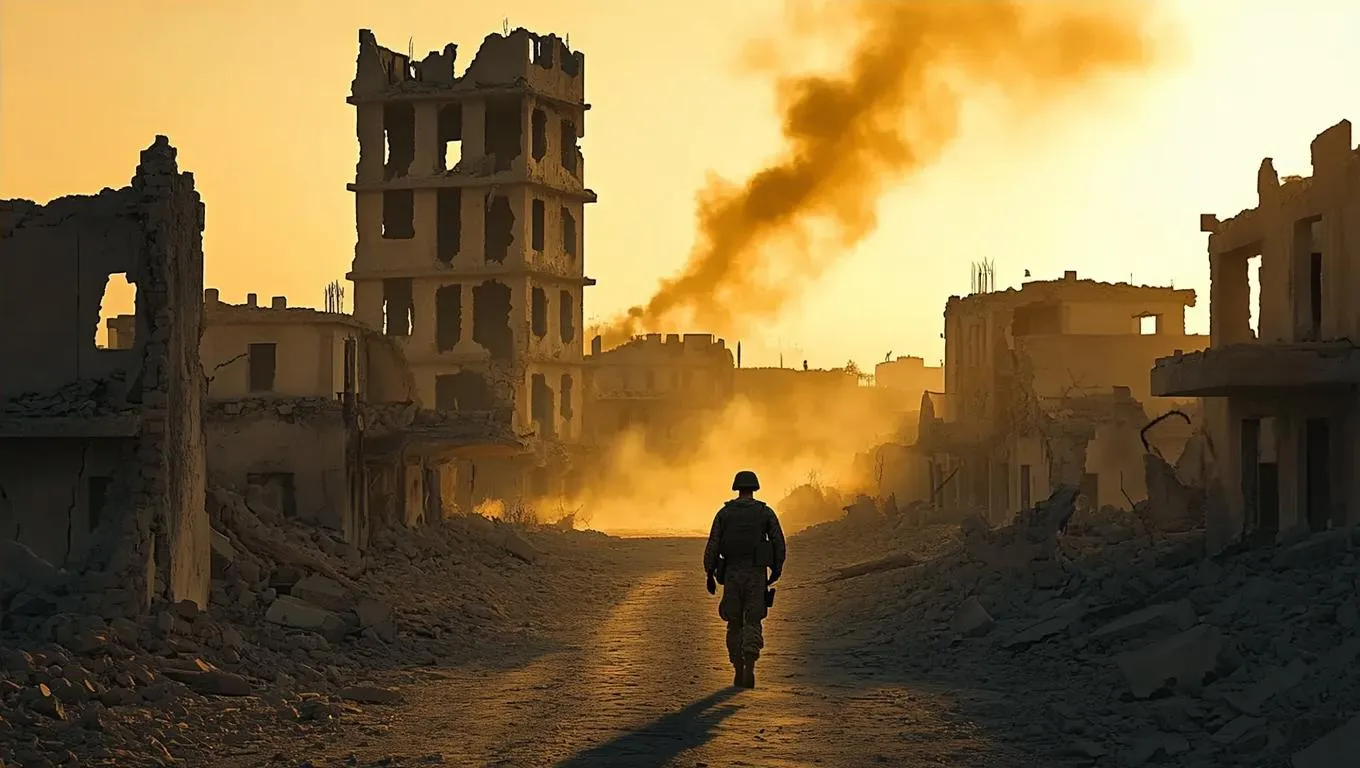 Create cinematic AI-generated images with vivago.ai. Craft hyperrealistic scenes like a lone soldier in a ruined village, Hollywood-style visuals, solemn mood, and ultra-wide 21:9 format. Perfect for slow-pullback shots, soft light gradients, and dramatic realism. Elevate storytelling with AI-powered cinematic beauty, smoke trails, and crumbling structures. Ideal for realistic, emotionally charged narratives.