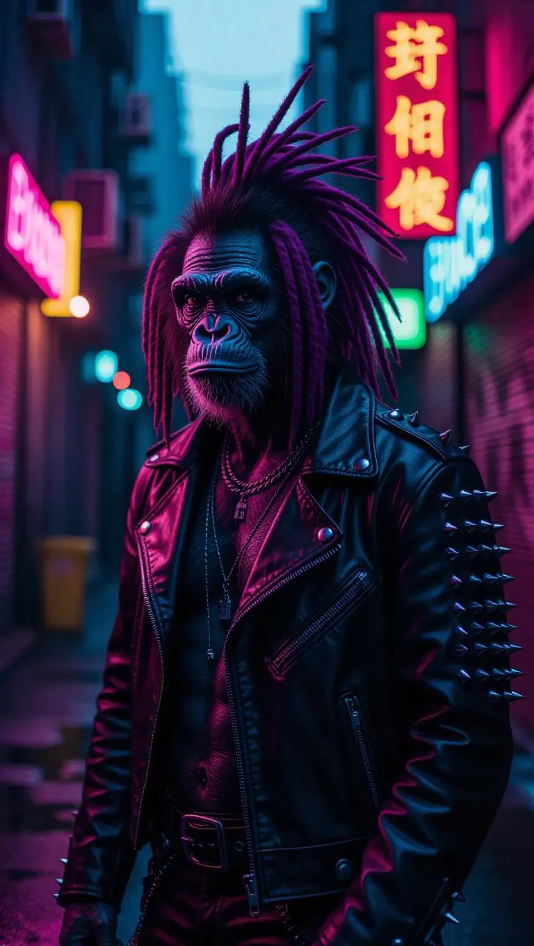 Transform your images with the Fabiano la Scimmia Punk AI effect! Create edgy, punk-inspired monkey characters featuring vibrant neon hair, bold accessories, and rebellious textures. Perfect for eye-catching designs, memes, or avant-garde art projects. Customize with Vivago.ai's AI tools for dynamic, high-quality results. Unleash creativity with this wild, retro-futuristic character effect.