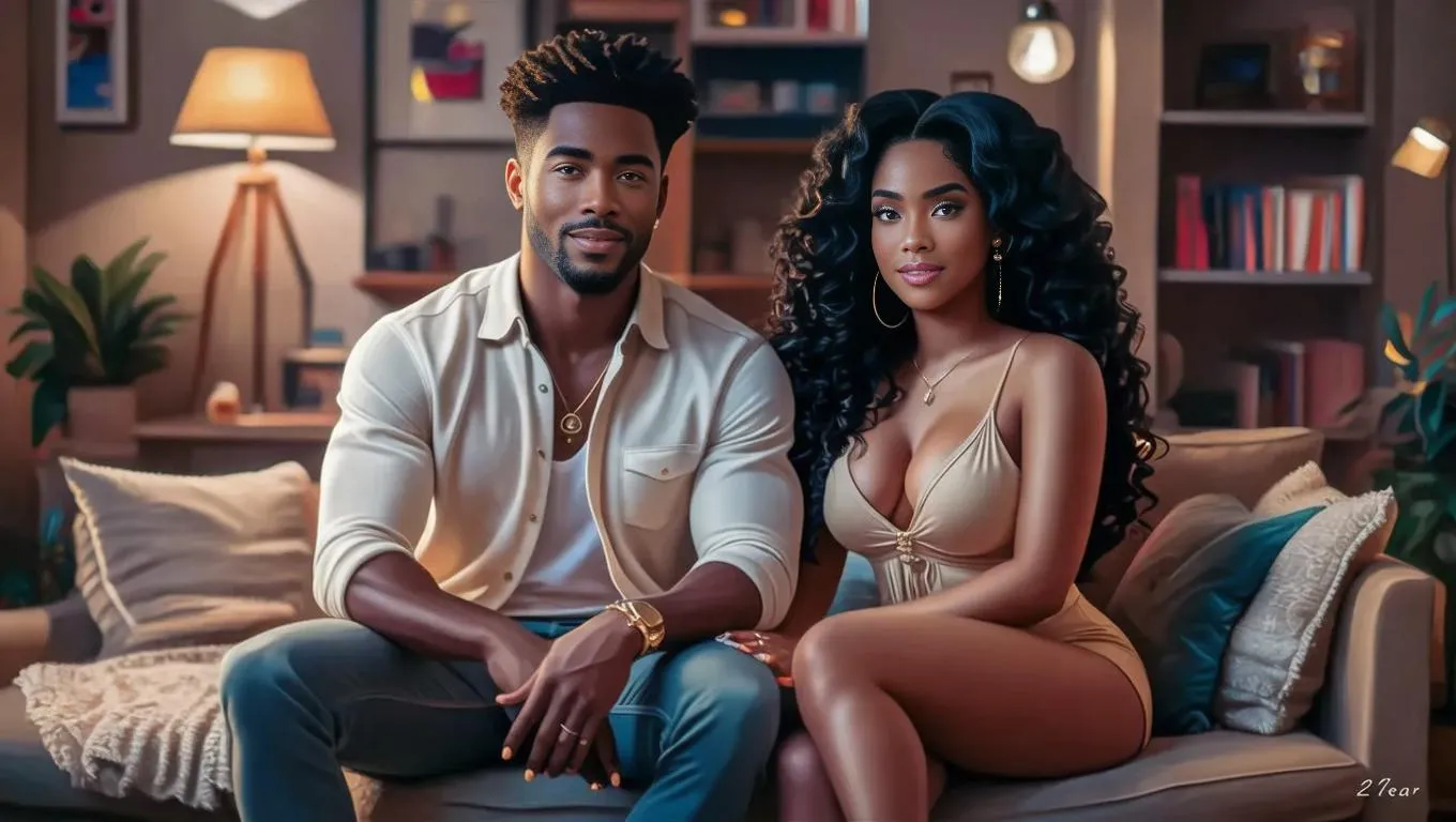 Create realistic AI-generated visuals of a stylish young Black couple in a cozy, organized apartment. Vivago.ai crafts detailed imagery highlighting natural beauty, modern relationships, and tidy living spaces. Perfect for dynamic storytelling with lifelike details like curly hair, round thighs, and contemporary interiors. Elevate projects with professional AI effects.