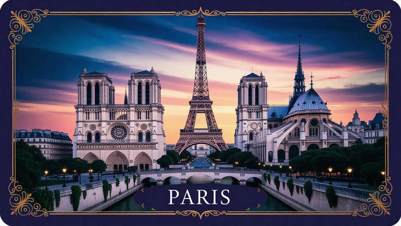 Create stunning AI-generated Paris city cards featuring iconic landmarks like the Eiffel Tower, Louvre, and Notre-Dame. Use Vivago.ai's AI image generator to craft customizable designs with vivid details, artistic styles, and professional-grade visuals. Perfect for travel content, souvenirs, or social media—transform text prompts into Parisian masterpieces with AI effects and curated templates.