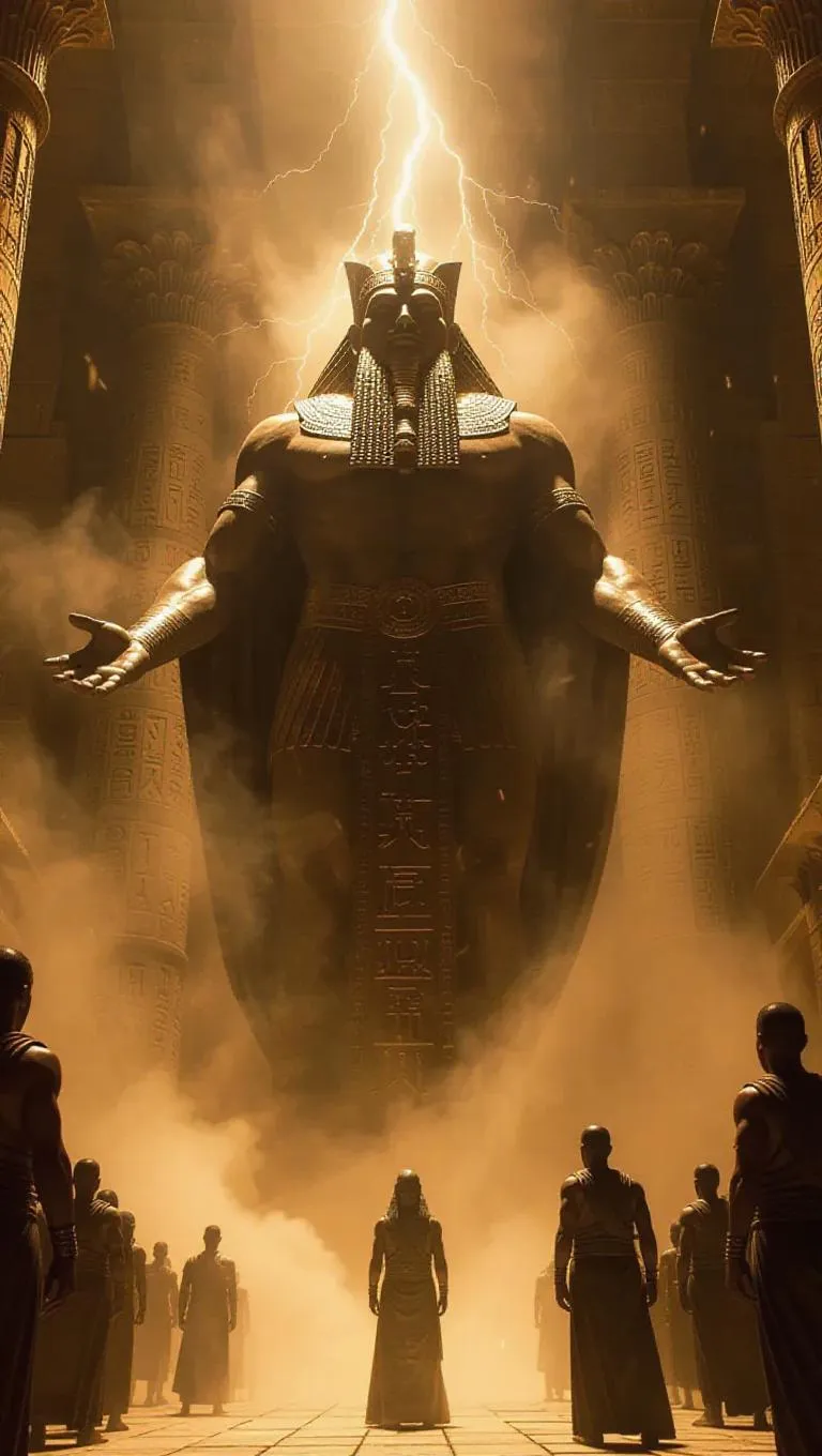 Experience Enlil, Sumerian god of storms, in AI-generated art. Emerging from ancient ziggurats, his divine stone form commands swirling sandstorms and crackling lightning. Glowing cuneiform runes orbit his colossal figure as priests kneel beneath celestial fury. Perfect for mythology-inspired AI visuals blending divine power, elemental chaos, and historic mystique with cutting-edge generative effects.